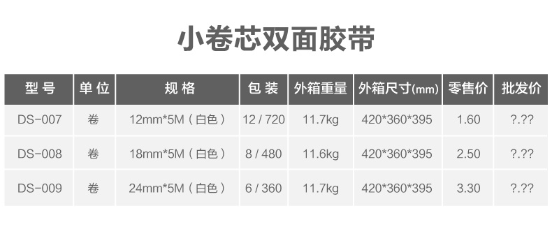 商品名称:北极熊 DS系列强力小卷芯双面胶带批发固定易撕两面胶24mm*5m