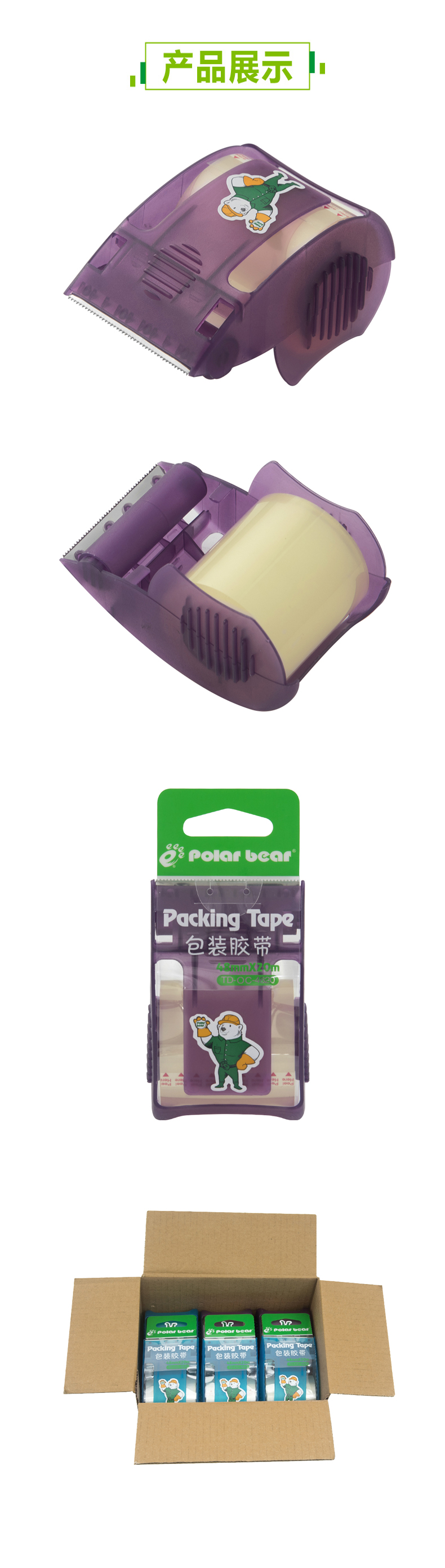商品名称:北极熊 0.045MM透明OPP 胶带座封箱器 4820
