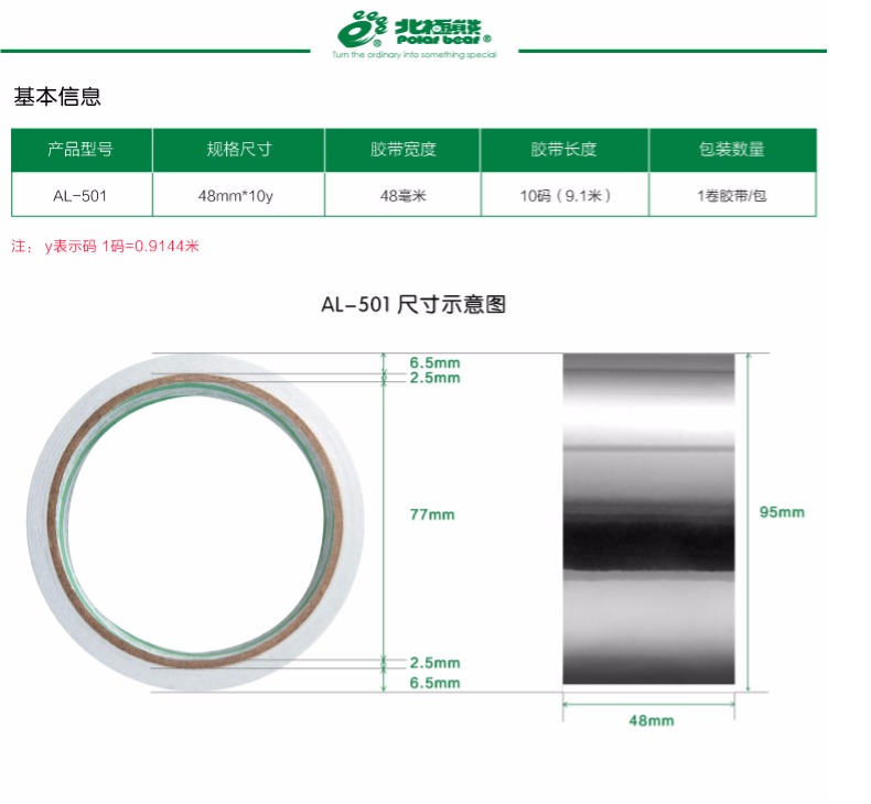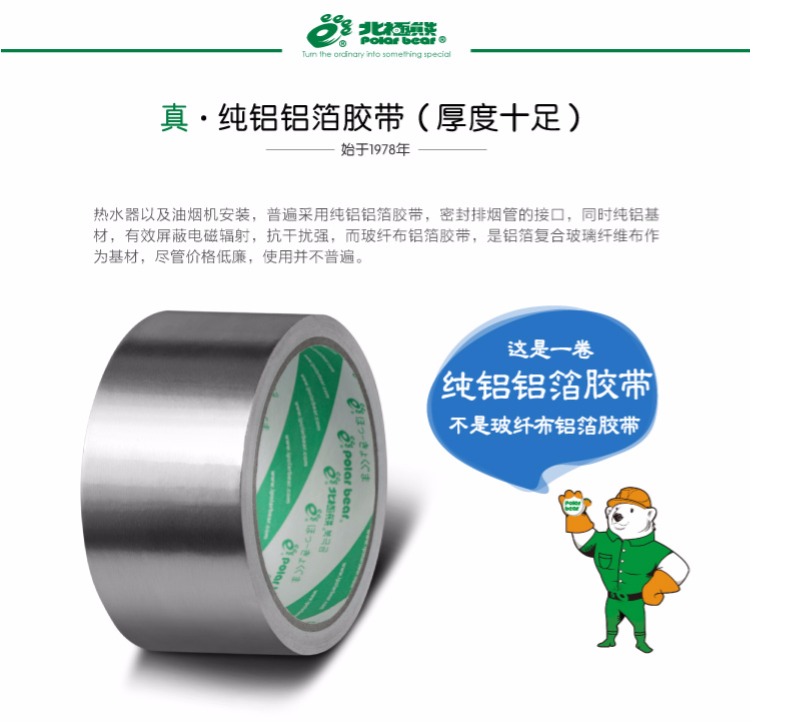 商品名称:北极熊 铝箔胶带加厚0.17mm耐高温阻燃油烟机排烟管水管补漏防水自粘胶布锡纸胶隔热 AL-501