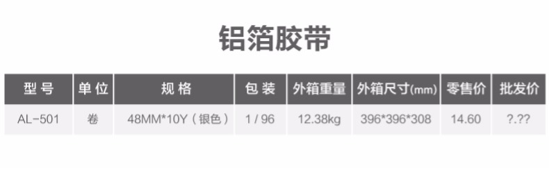 商品名称:北极熊 加厚铝箔胶带锡箔胶带纸防水 AL-501