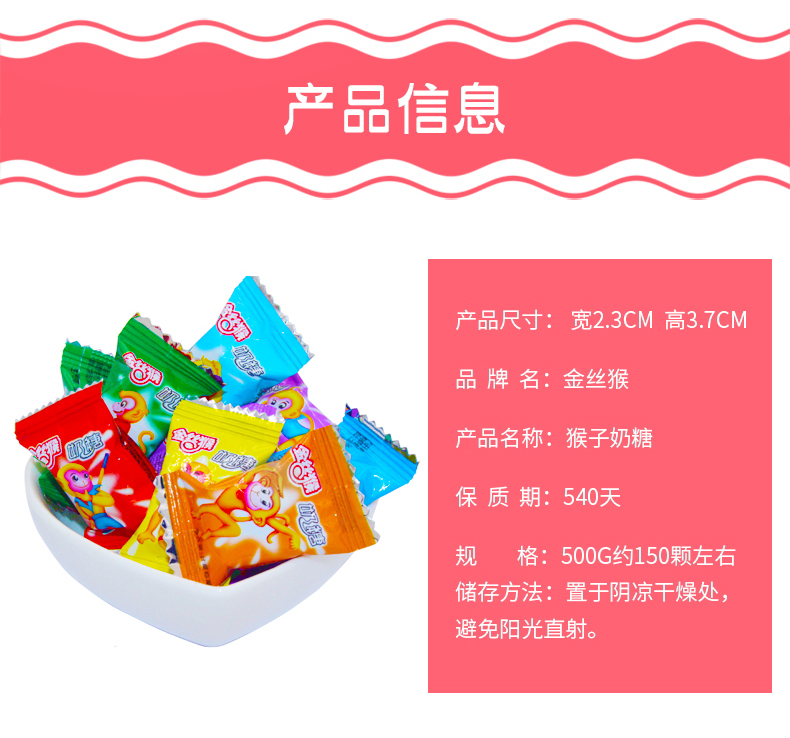 商品名称:金丝猴 牛奶软糖结婚庆喜糖混合口味500g散称
