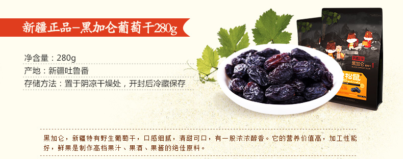 商品名称:三只松鼠 黑加仑葡萄干280g 新疆特产零食吐鲁番干