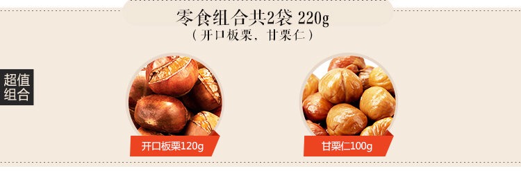 商品名称:三只松鼠 美粟板栗仁 能粟仁开口板栗组合套餐220g 熟食板栗仁