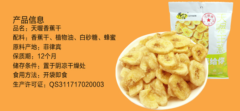 商品名称:天喔主意 香蕉干90g*5 风味水果干蜜饯休闲零食小吃