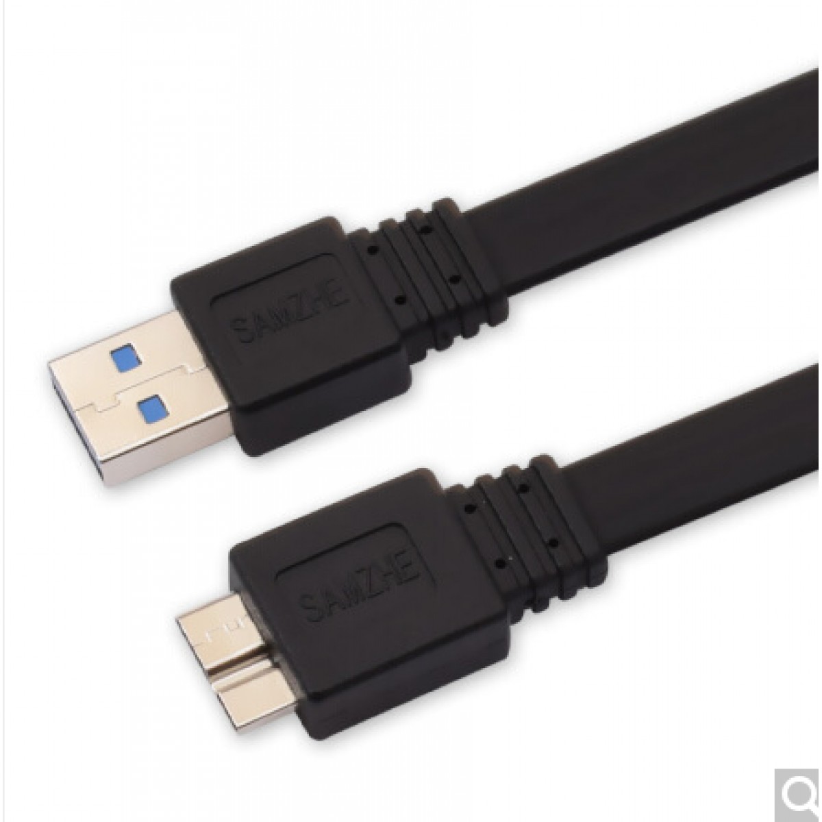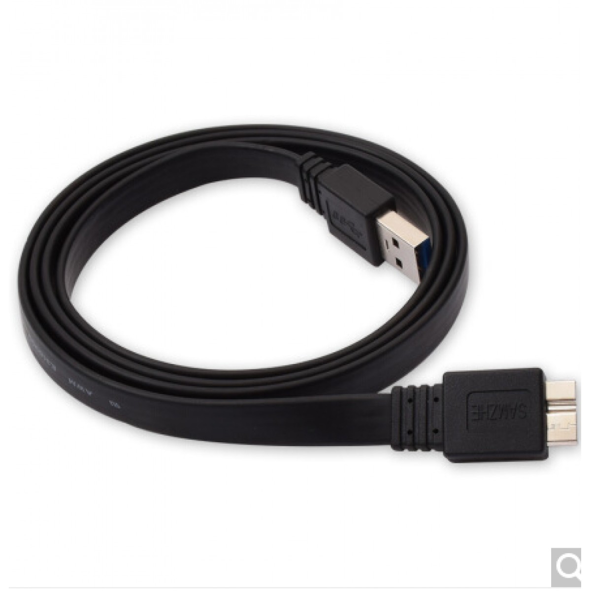 山泽(SAMZHE) AP-418 高速USB3.0移动硬盘数据线 AM/Micro B 手机数据充电连接线 扁平黑色1.5米