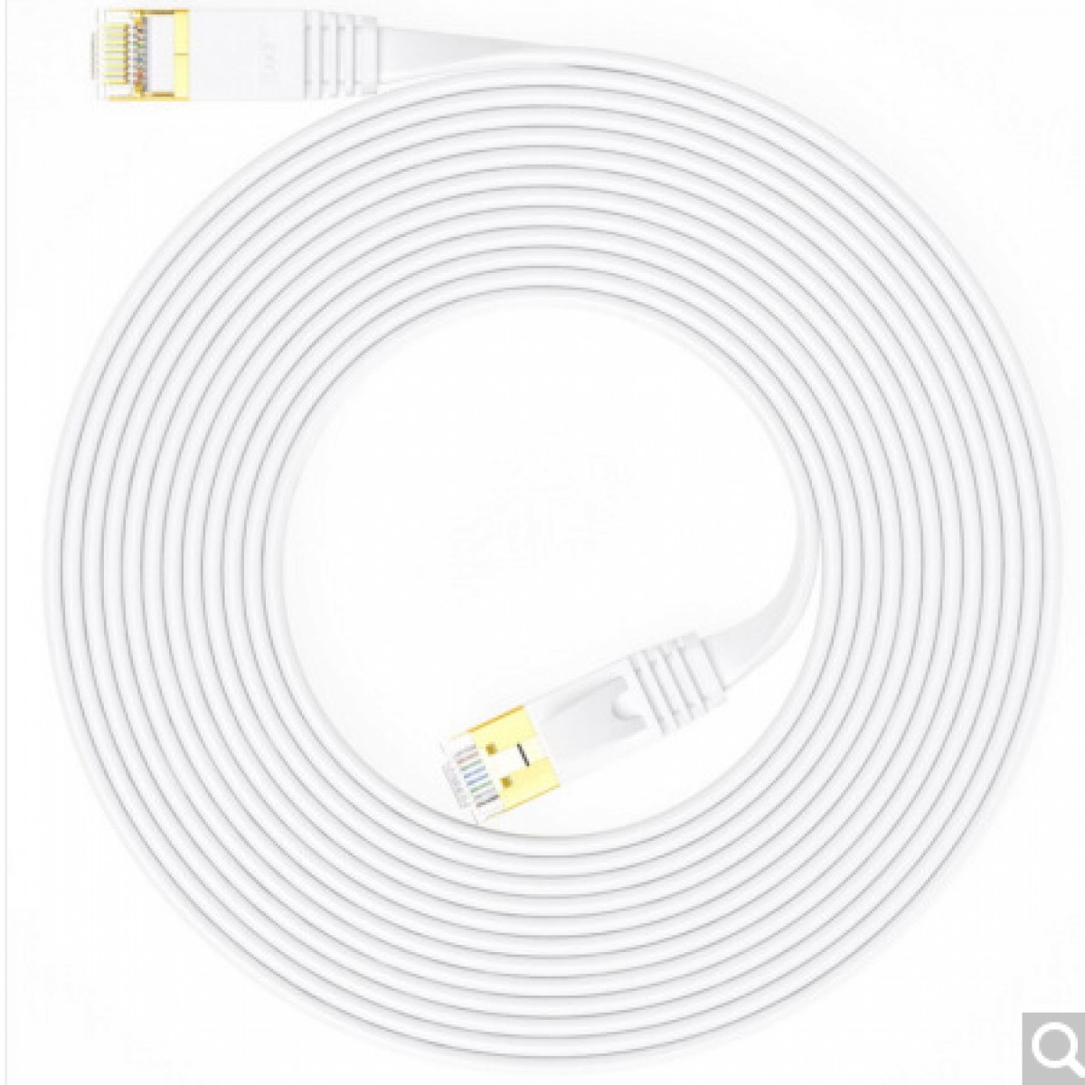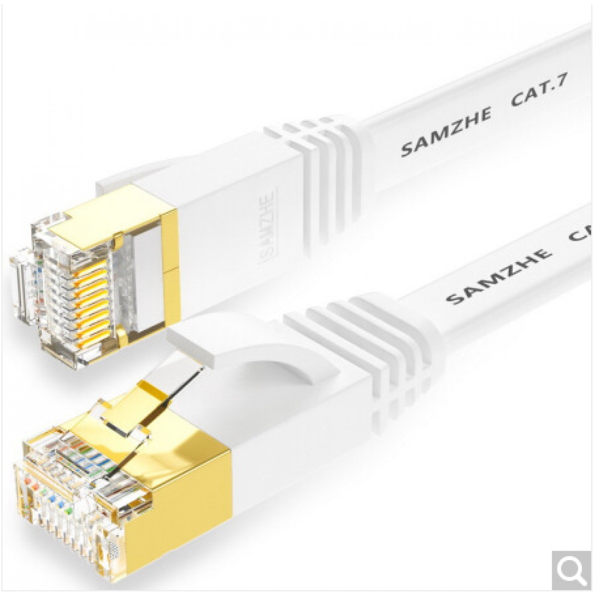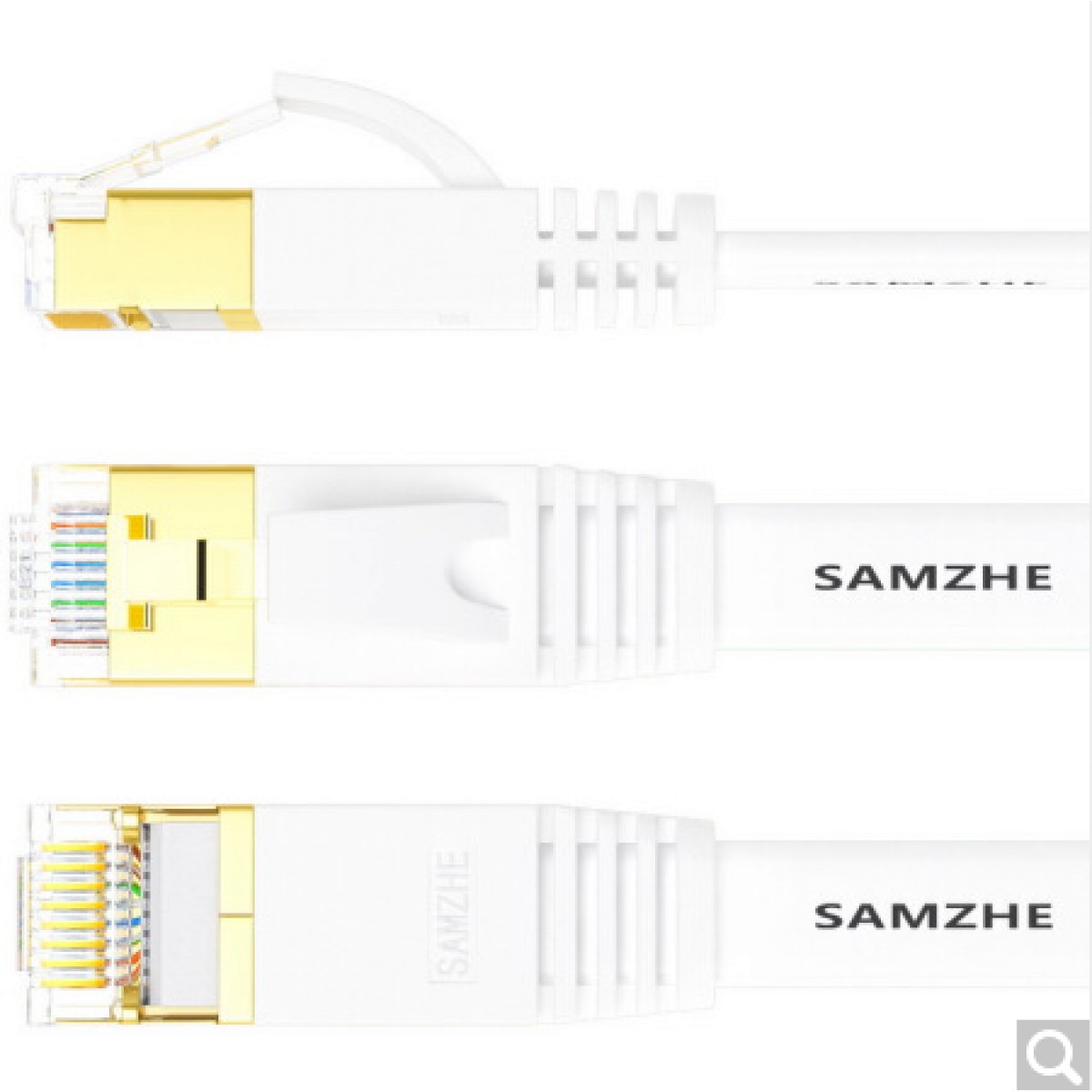 山泽(SAMZHE) CAT-710A 七类CAT7类扁平网线 镀金屏蔽双绞网络连接线 电脑网络跳线 7类成品网线 白色10米