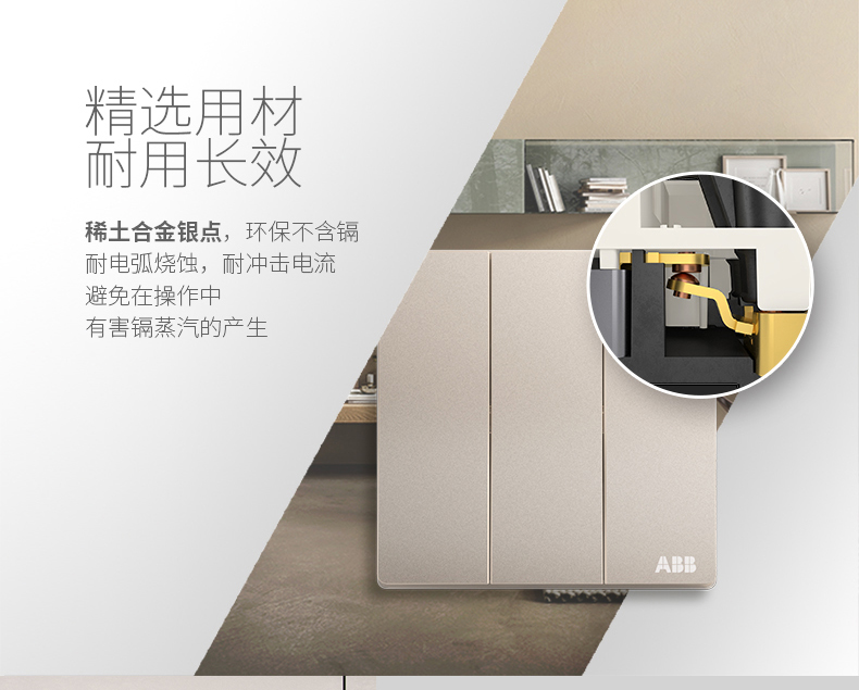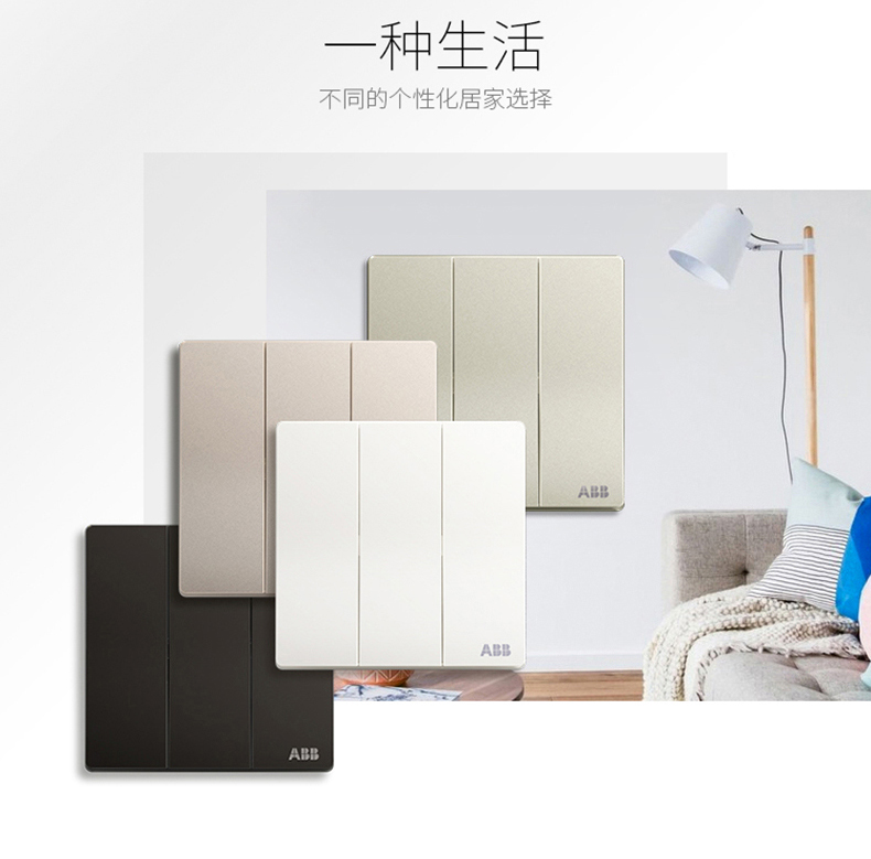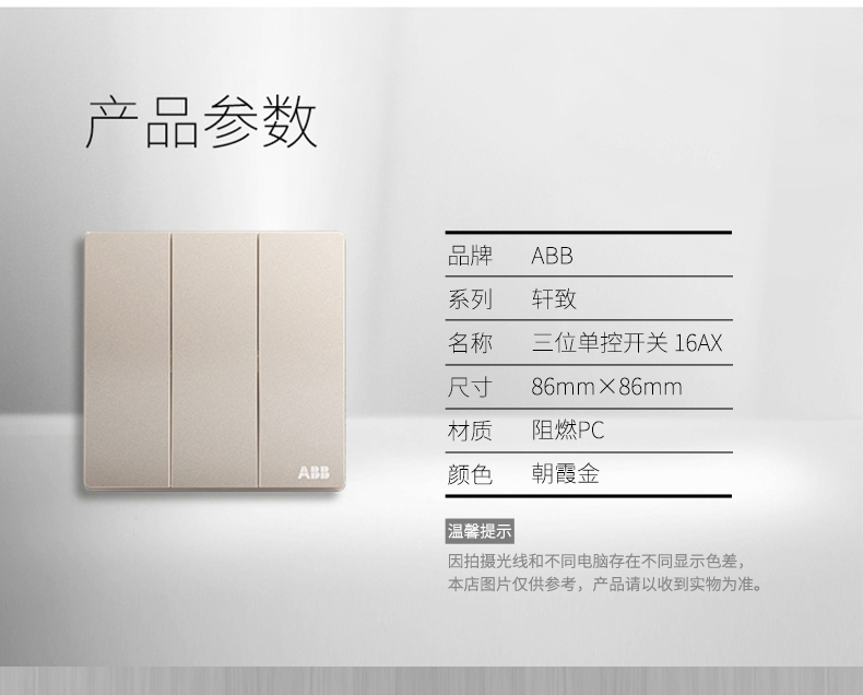 商品名称:ABB 开关面板墙壁电源3开三位三开三联单控开关轩致金色AF123-PG
