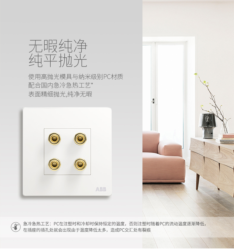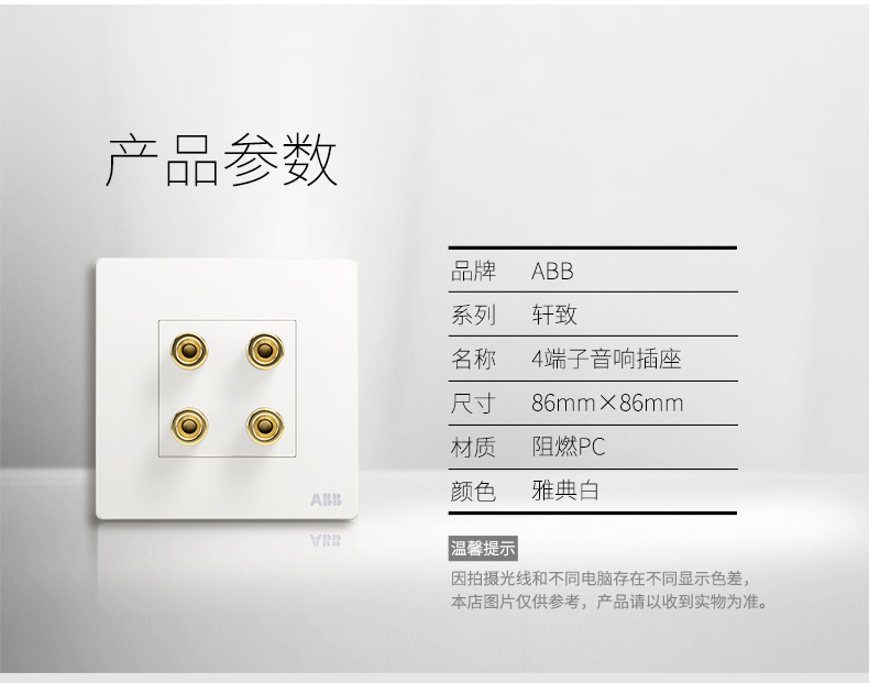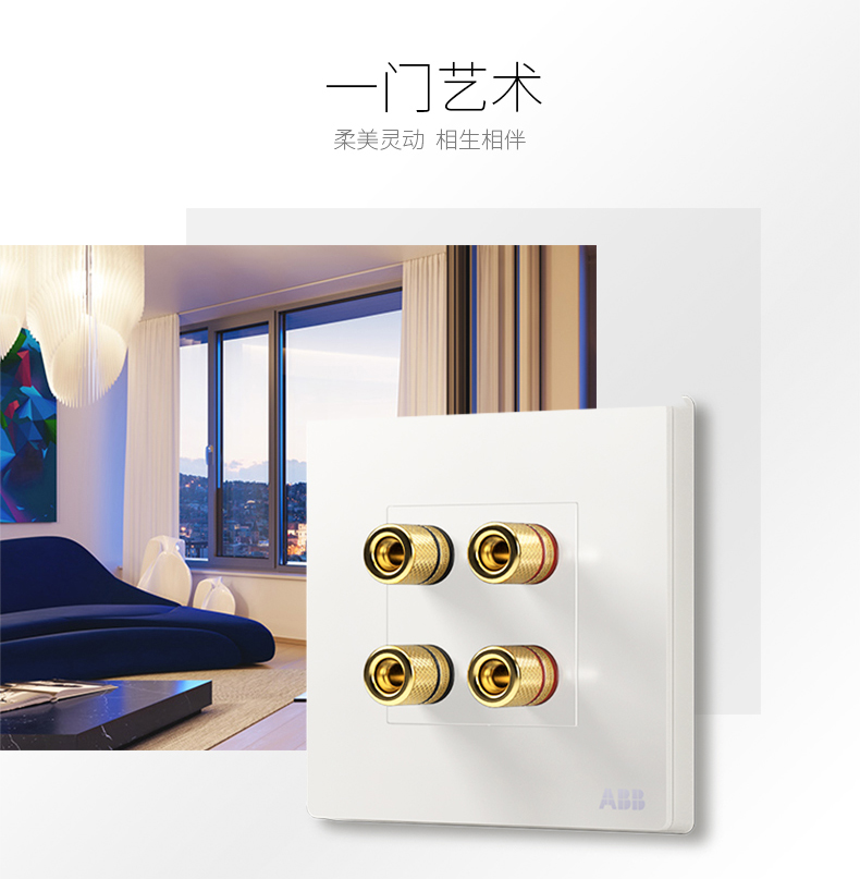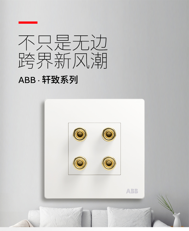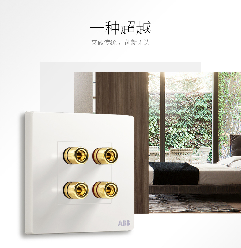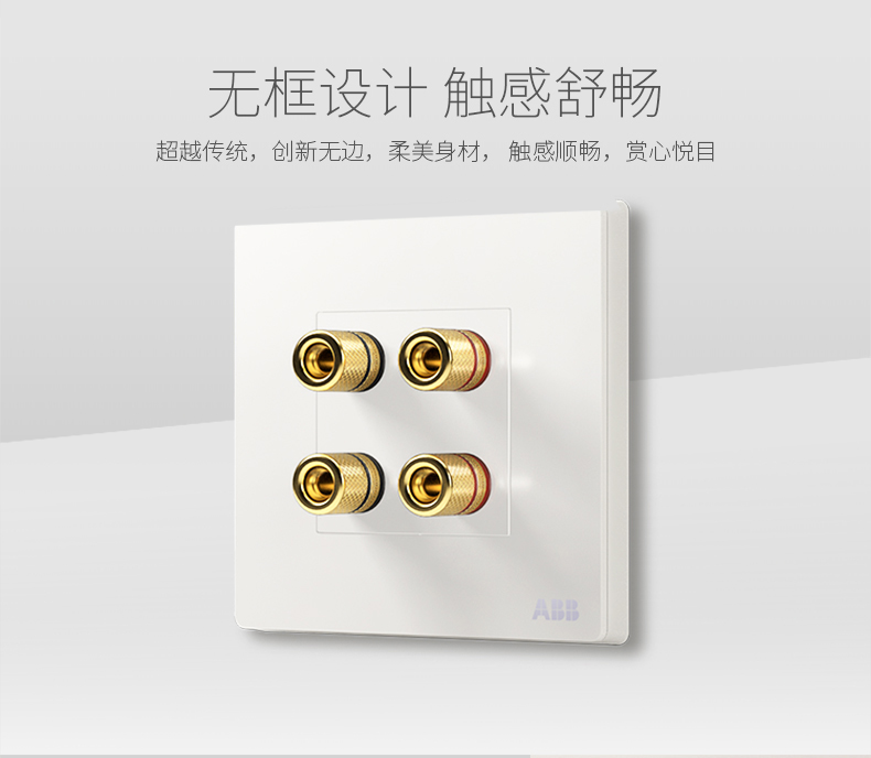 商品名称:ABB 开关插座弱电插座 轩致无框 雅典白色四位音响端子插座 AF342