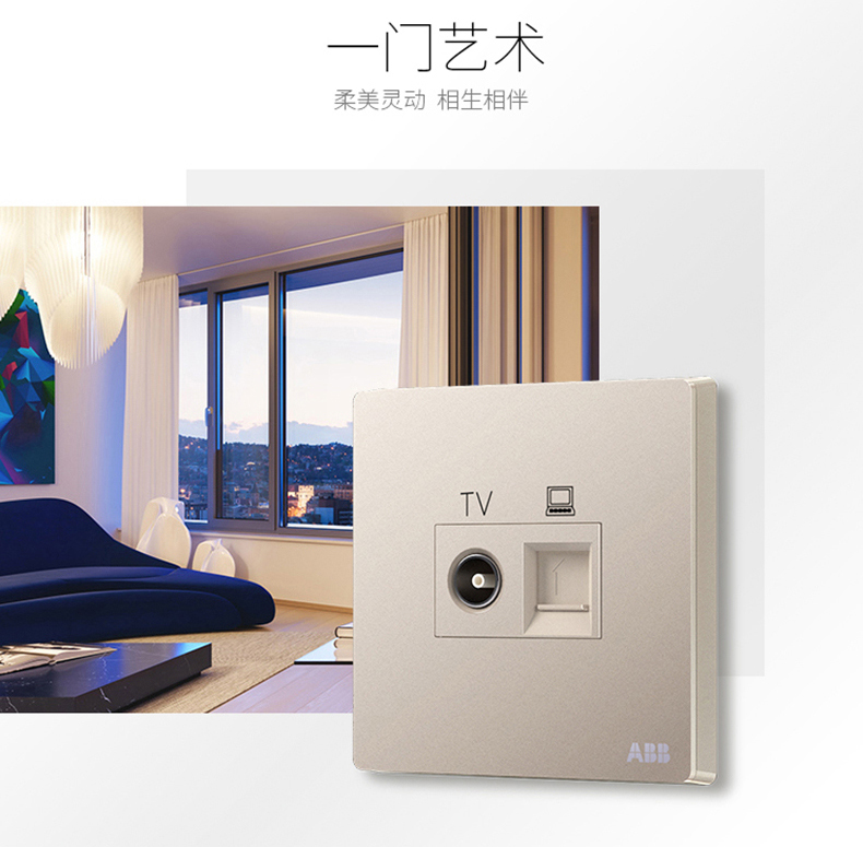 商品名称:ABB 开关面板家用TV有线电视电脑插座网络信息轩致 金色AF325-PG