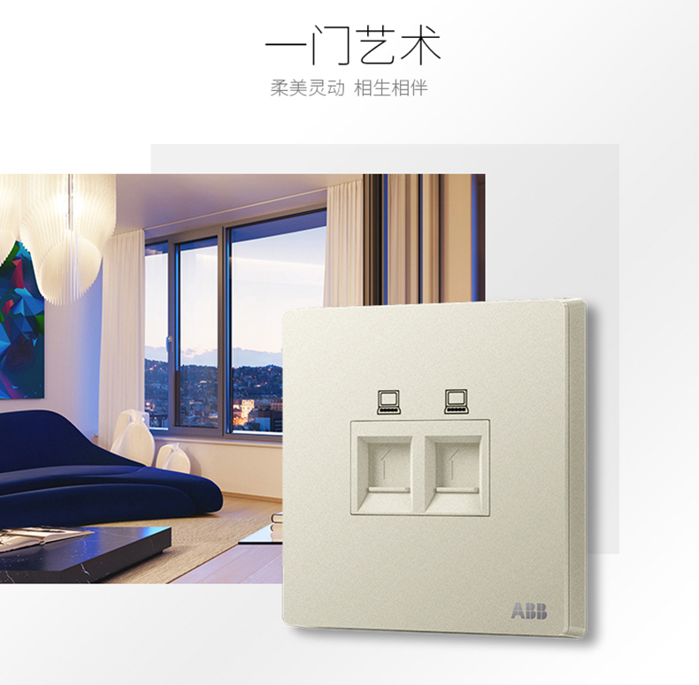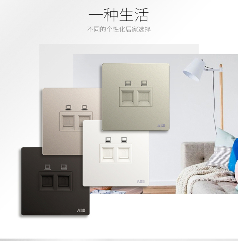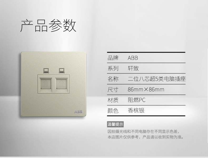 商品名称:ABB 开关插座面板86型家用网线网络二位电脑插座轩致银色AF332-CS