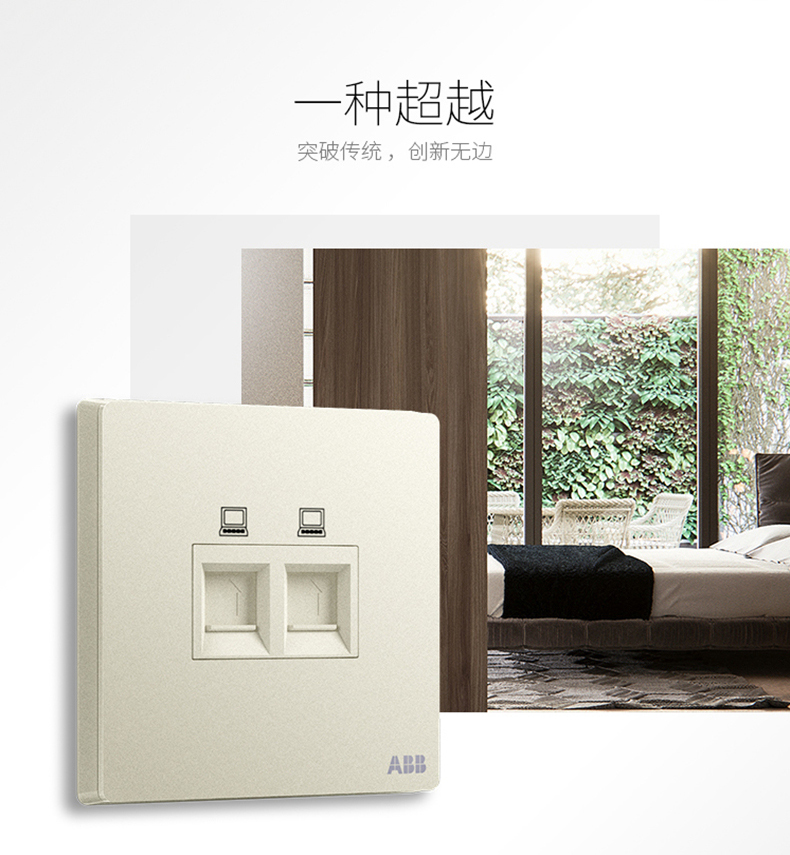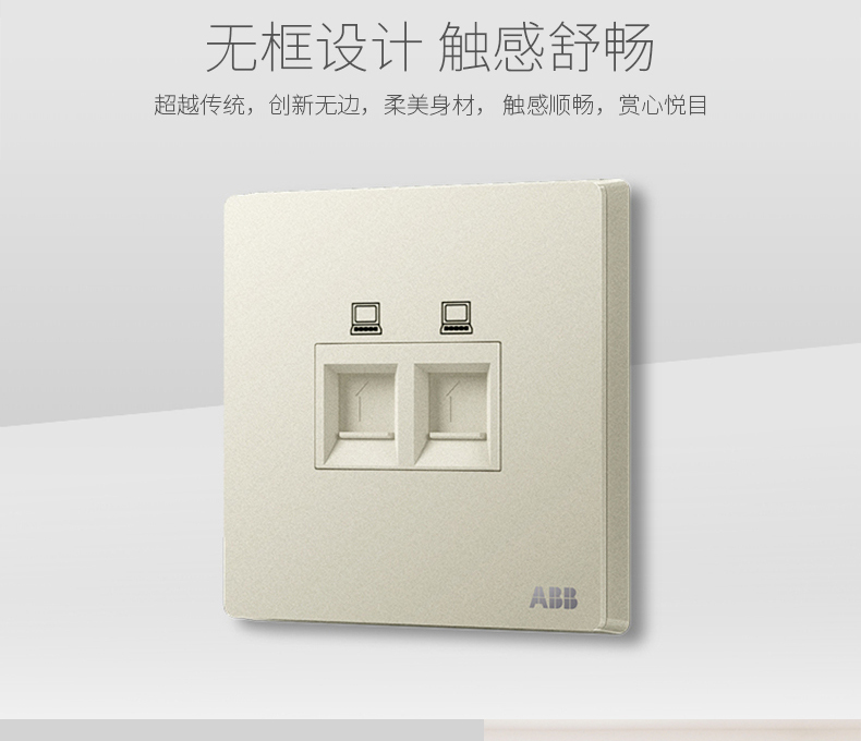 ABB 开关插座面板86型家用网线网络二位电脑插座轩致银色AF332-CS