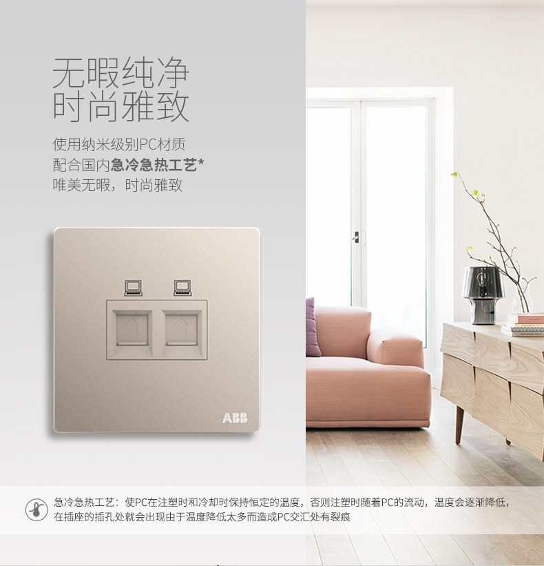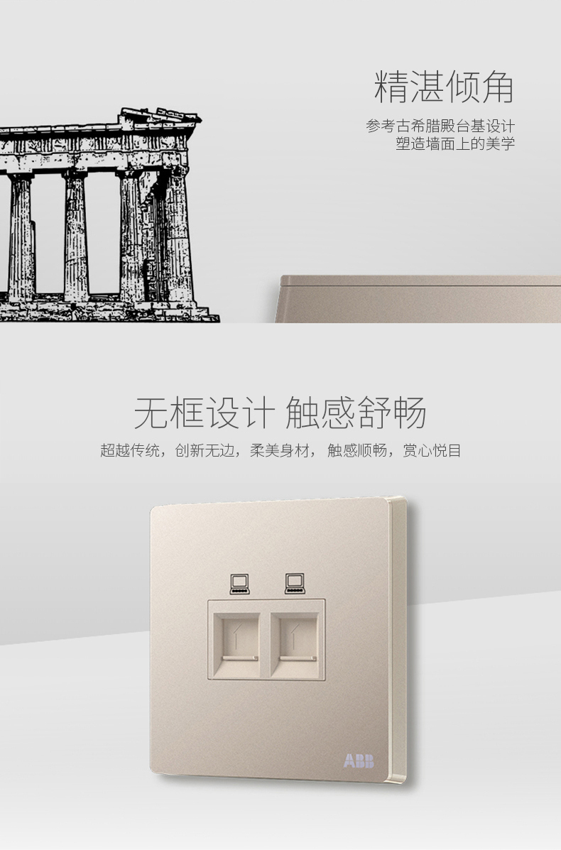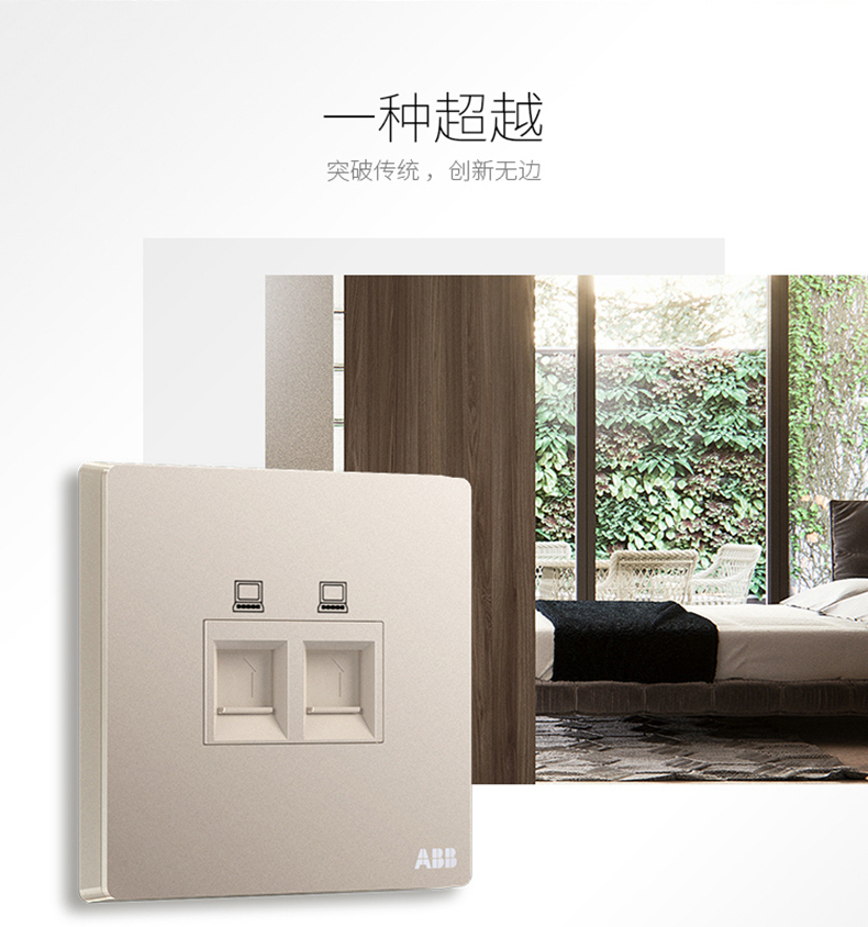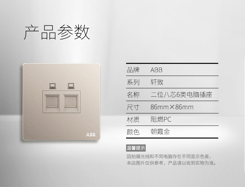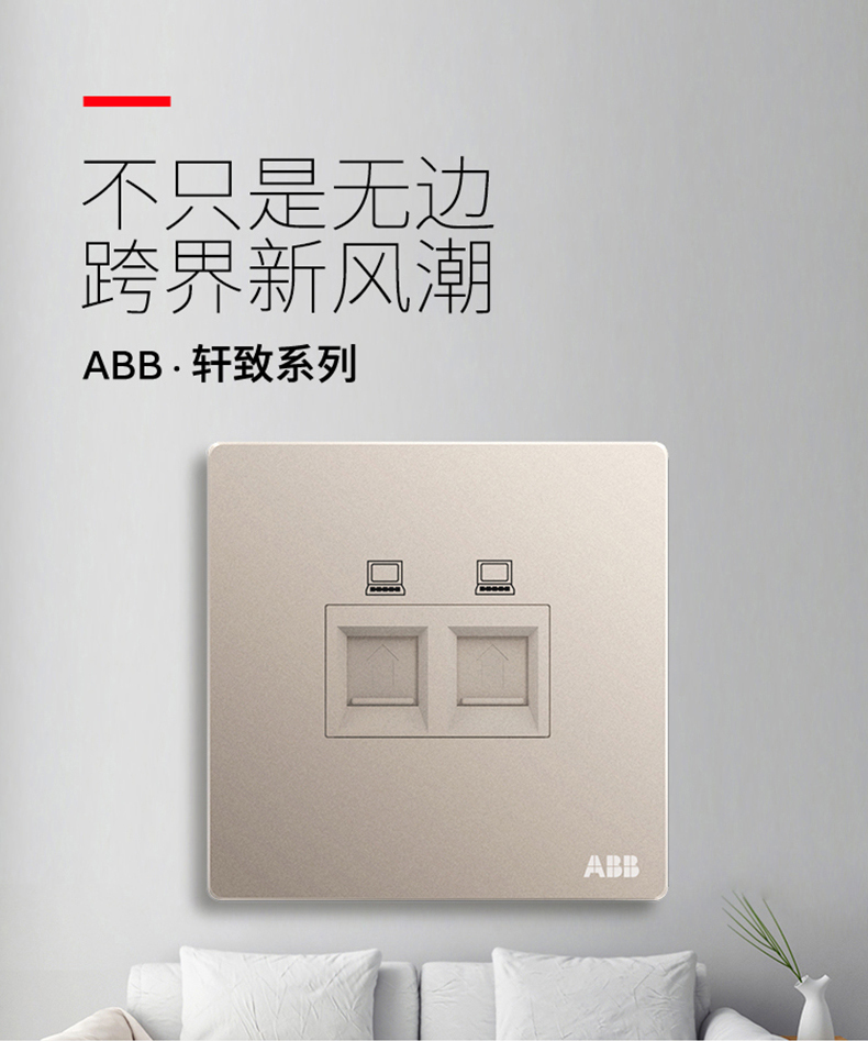 商品名称:ABB 开关插座 轩致无框 朝霞金 二位6类六类电脑网络插座AF329-PG