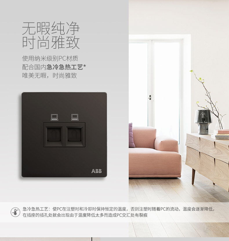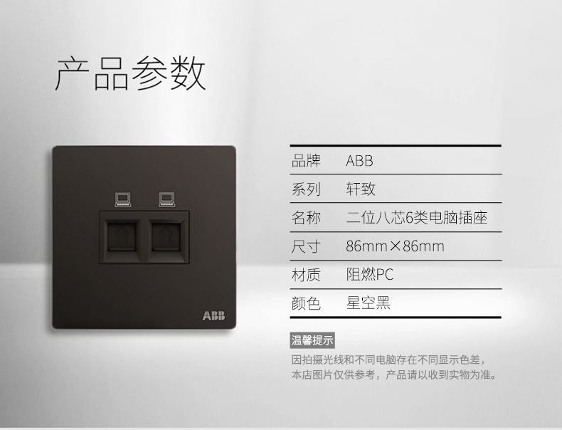 商品名称:ABB 开关插座 轩致无框 星空黑 二位6类六类电脑网络插座AF329-885