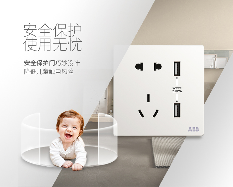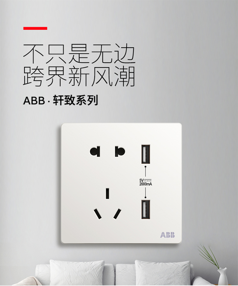ABB 开关插座面板轩致无框雅典白色10A五孔带双USB充电二三插AF293