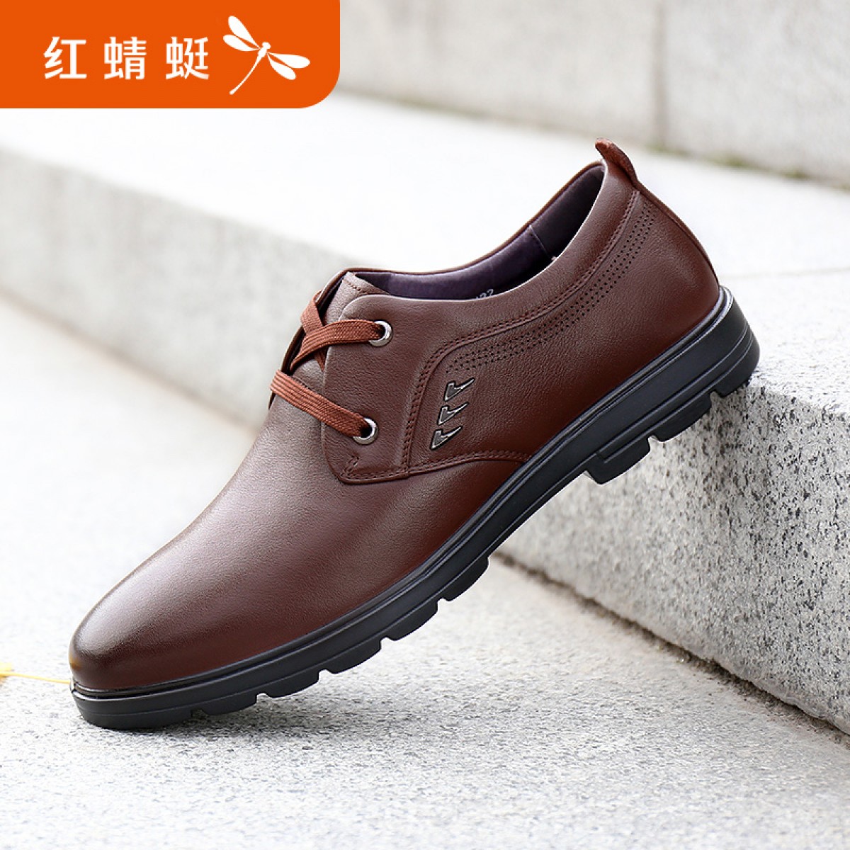 红蜻蜓 男鞋皮鞋男厚底透气真皮商务休闲鞋大码鞋