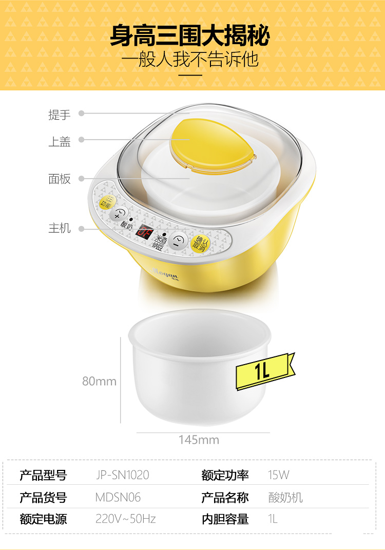 商品名称:蒙得 JP-SN1020酸奶机家用全自动迷你密封陶瓷内胆自制发酵纳豆机