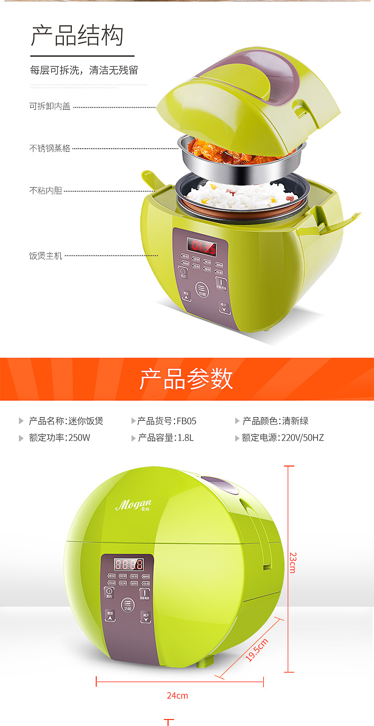 商品名称:蒙得 GL-166 智能预约自动家用迷你电饭煲