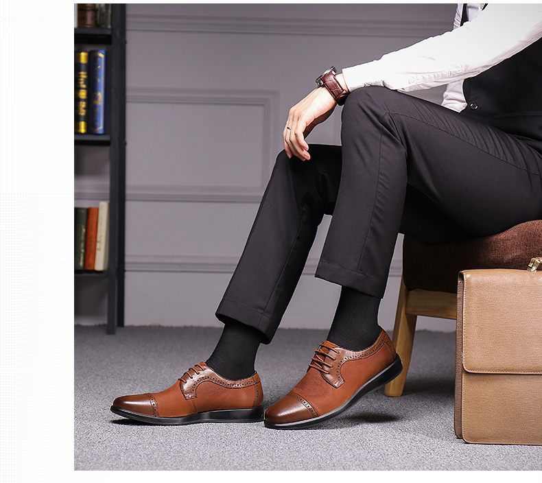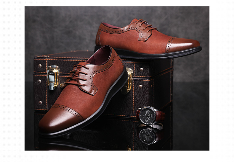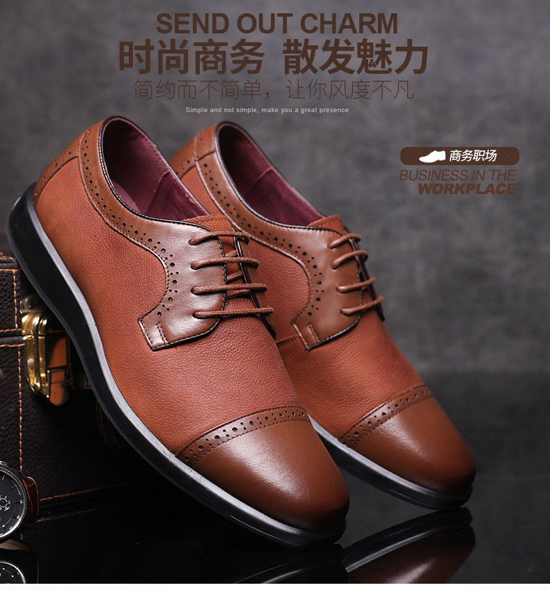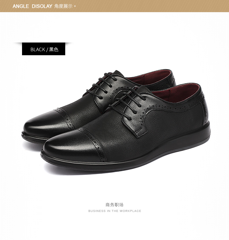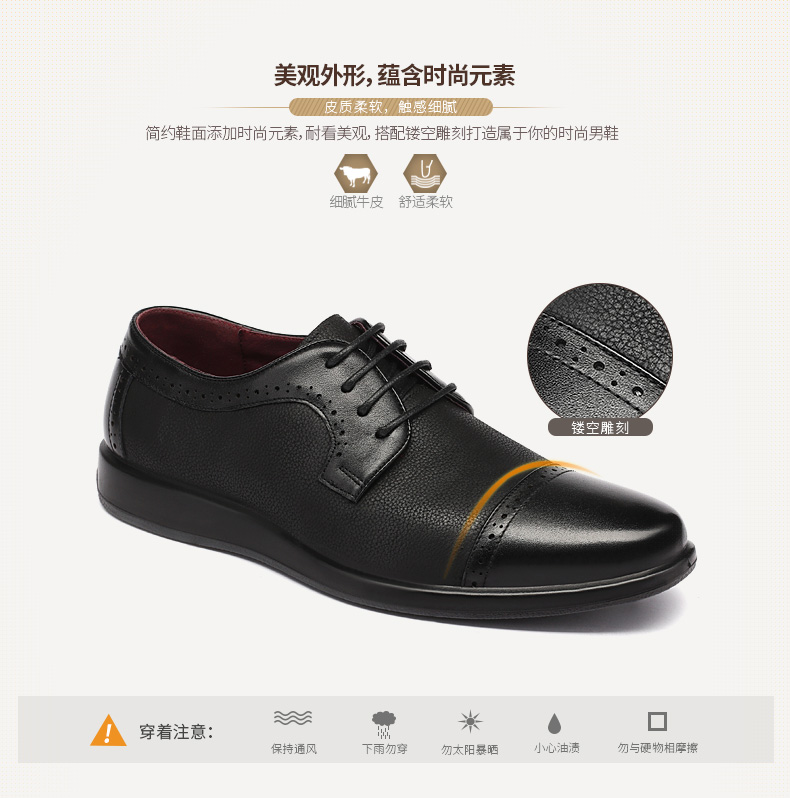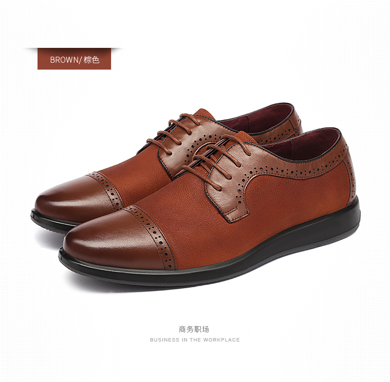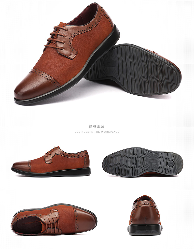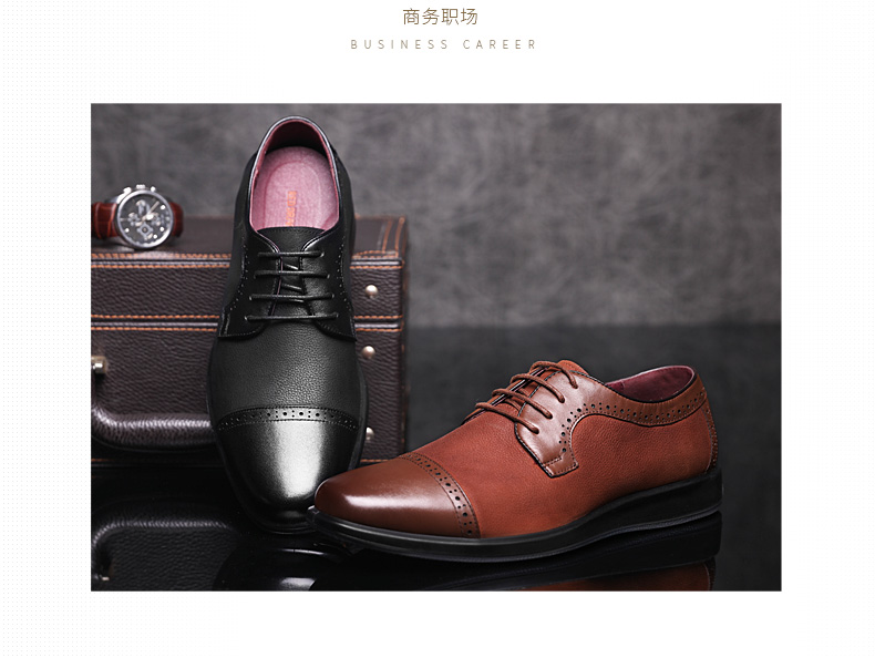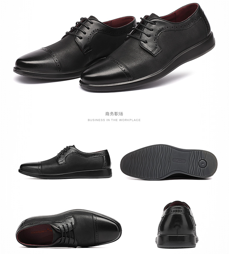 红蜻蜓 真皮透气布洛克皮鞋男 镂空商务鞋子