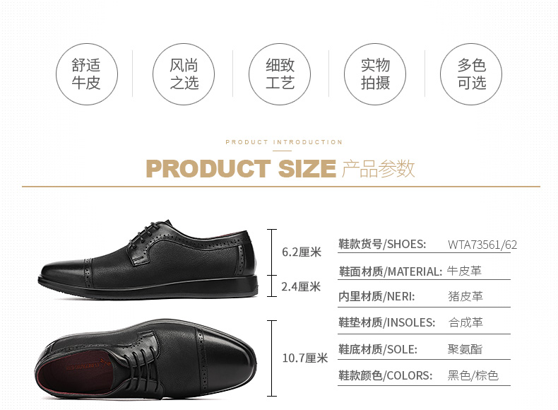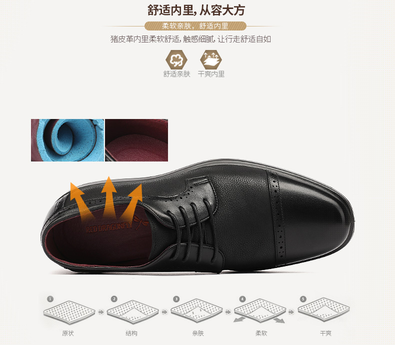 商品名称:红蜻蜓 真皮透气布洛克皮鞋男 镂空商务鞋子