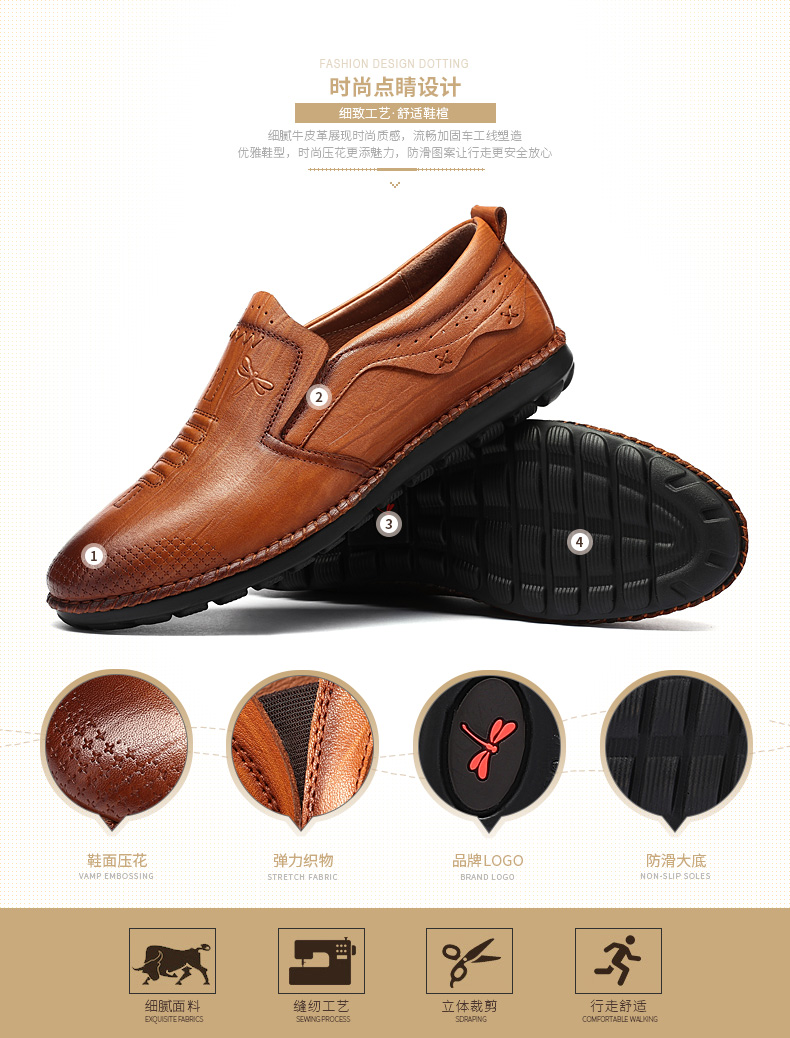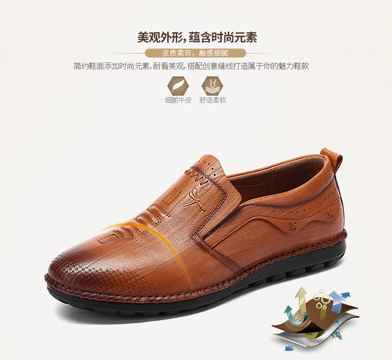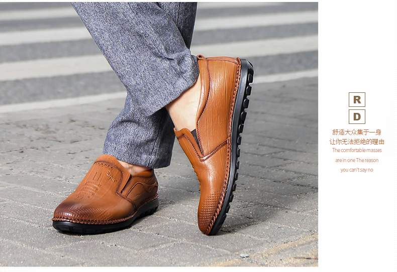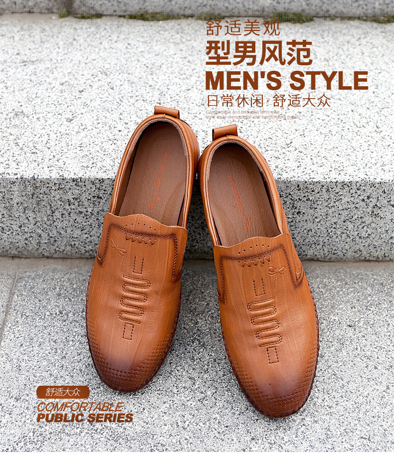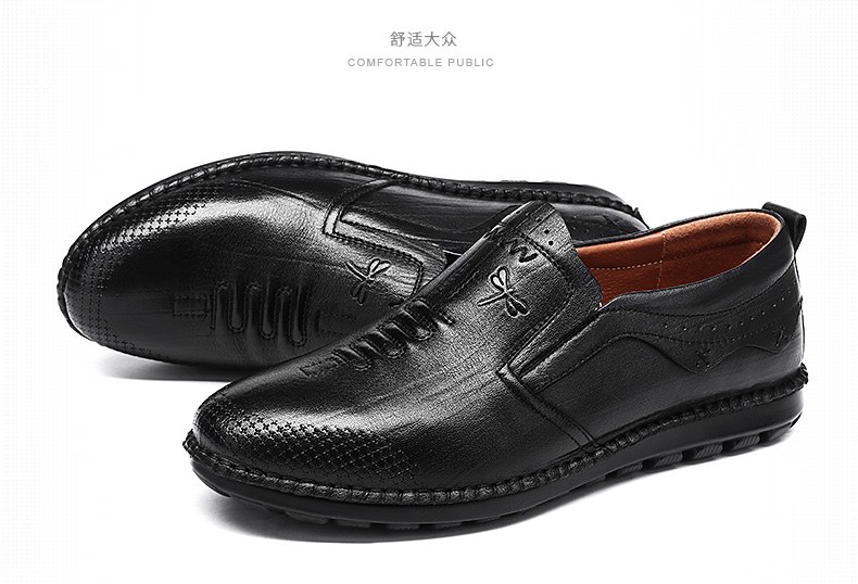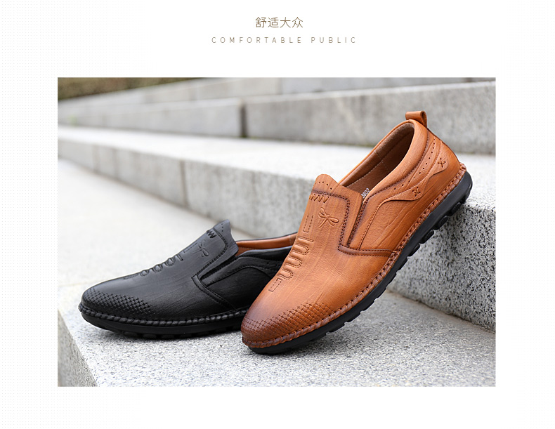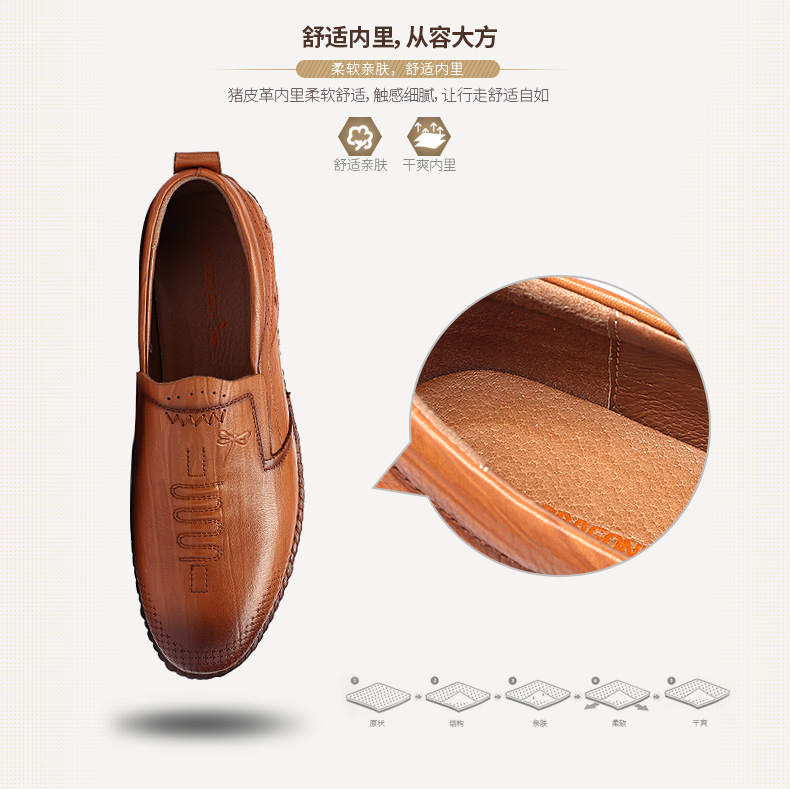 商品名称:红蜻蜓 秋季新款日常休闲皮鞋舒适圆头真皮套脚休闲鞋
