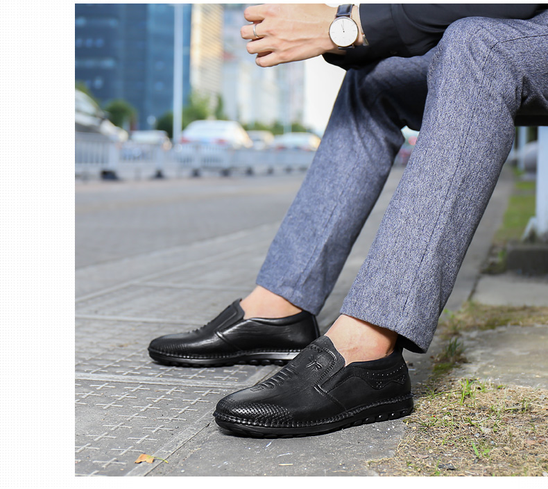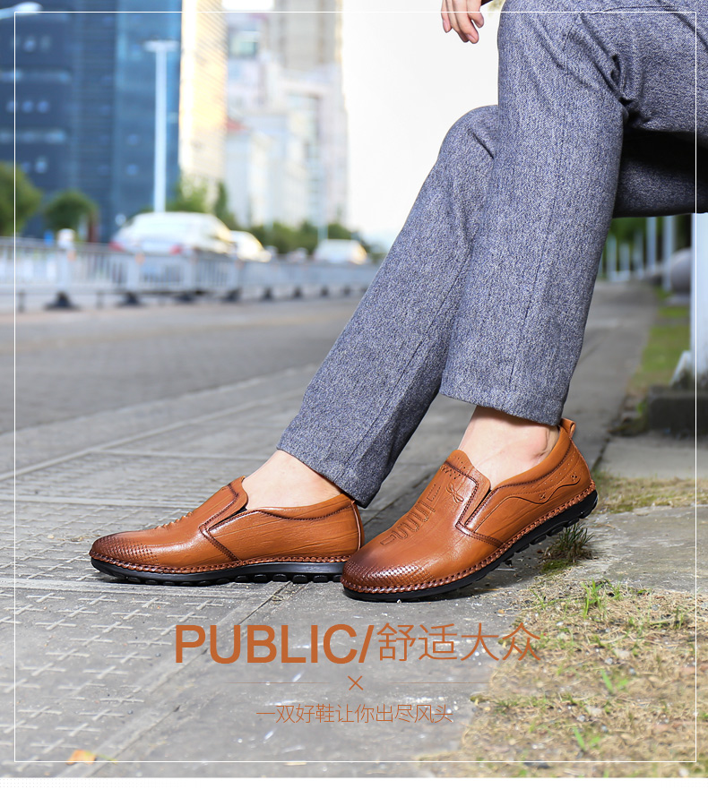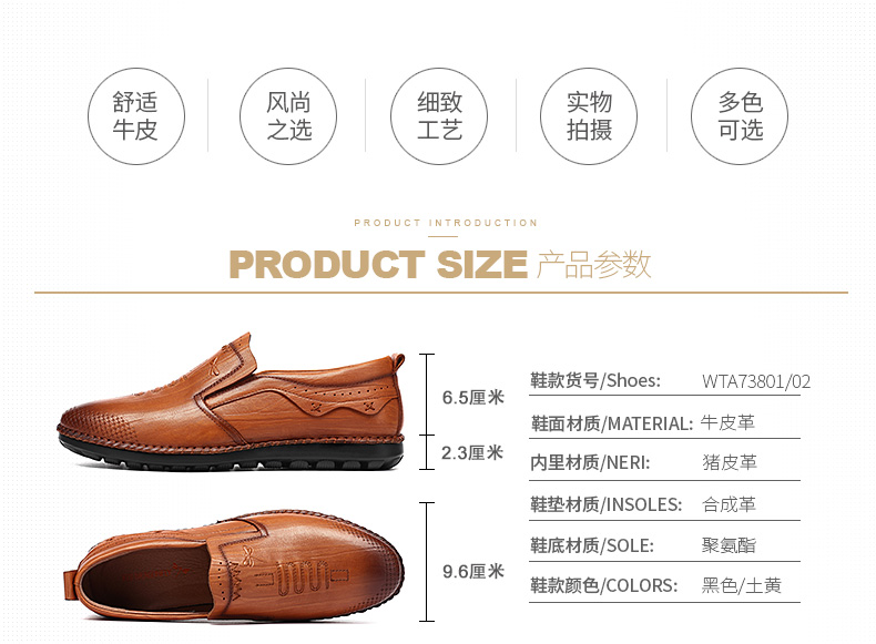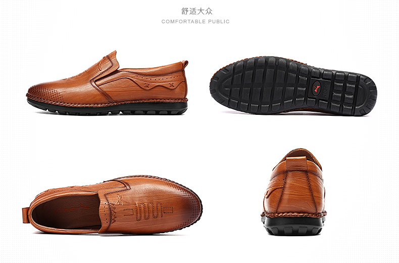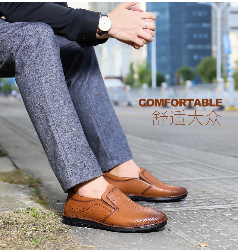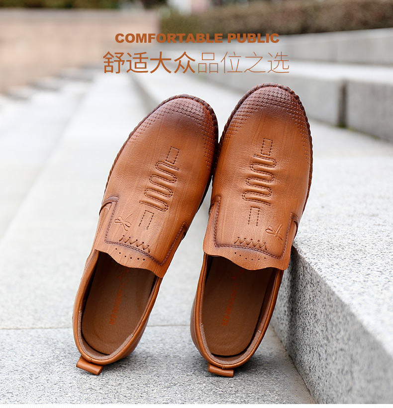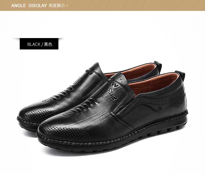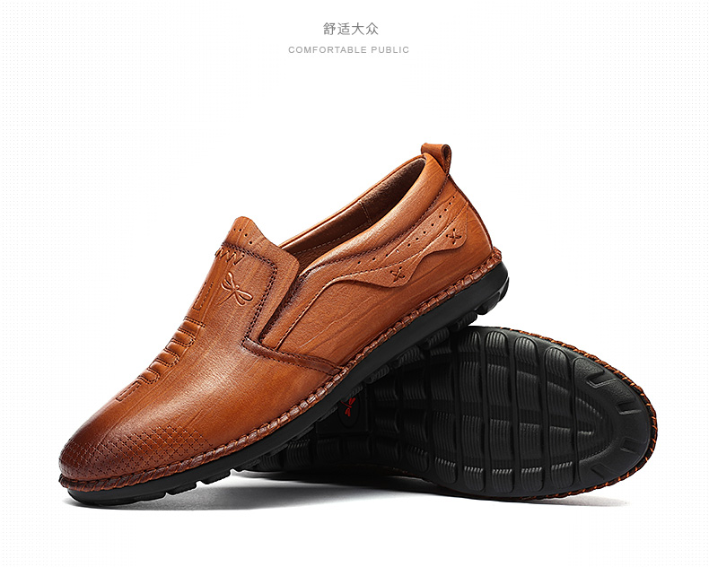商品名称:红蜻蜓 秋季新款日常休闲皮鞋舒适圆头真皮套脚休闲鞋