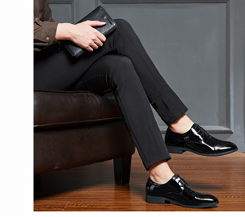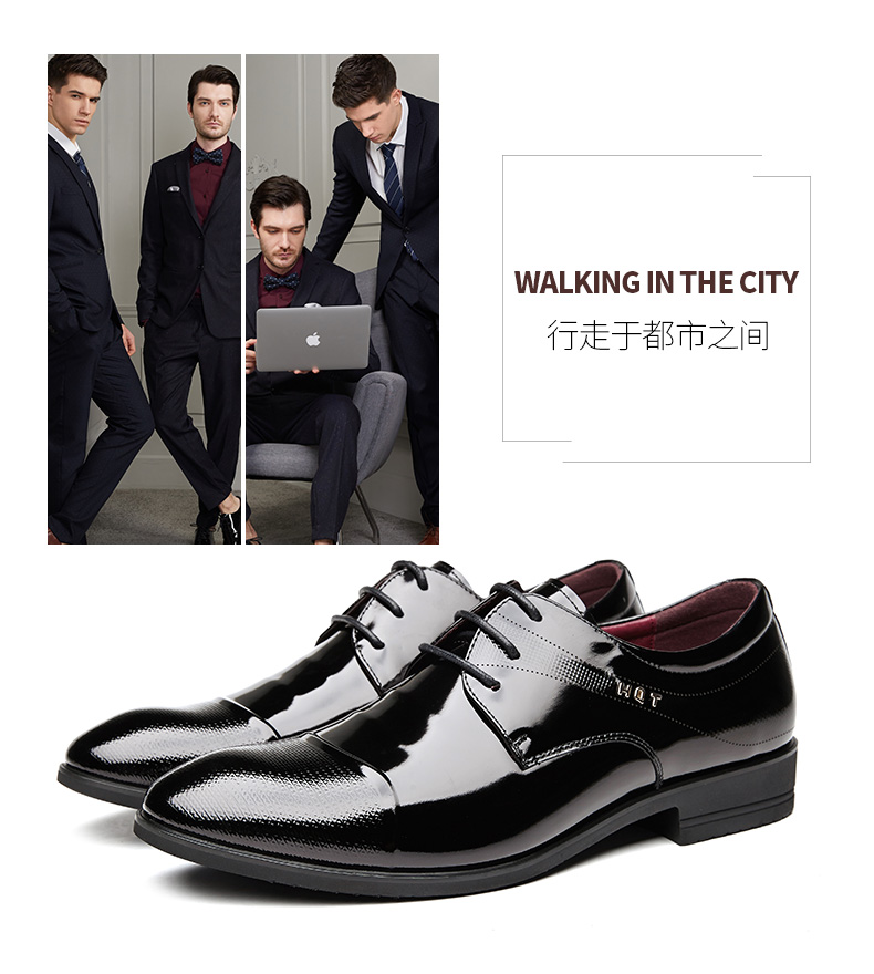 红蜻蜓 男鞋秋季新款真皮商务正装皮鞋子男亮漆皮婚鞋