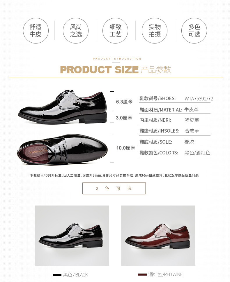 商品名称:红蜻蜓 男鞋秋季新款真皮商务正装皮鞋子男亮漆皮婚鞋