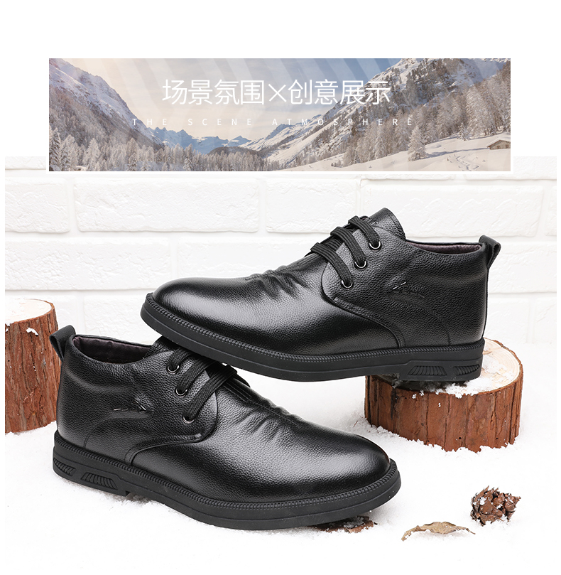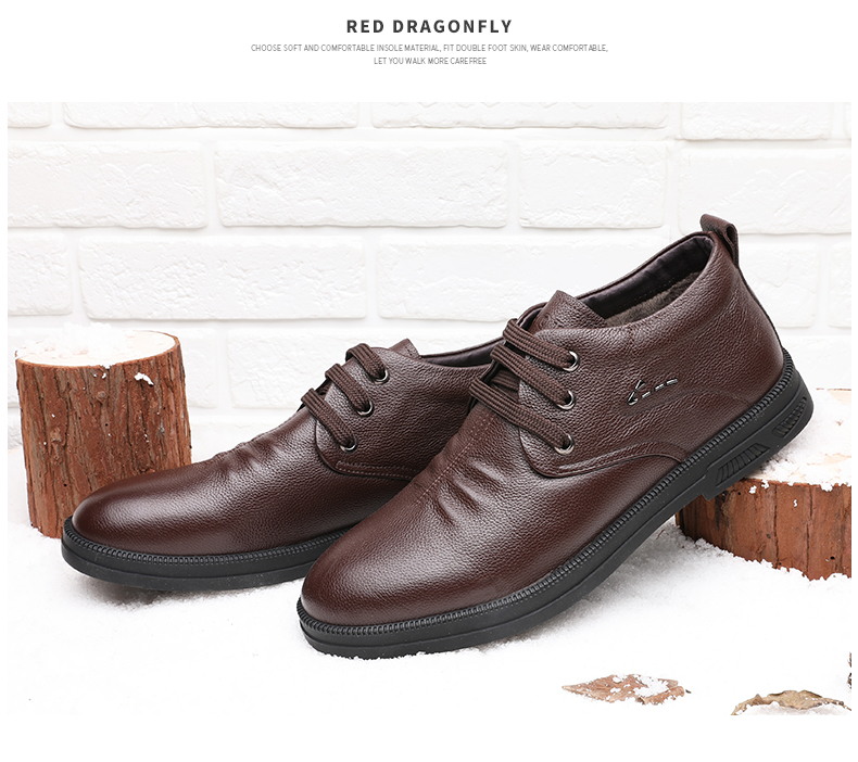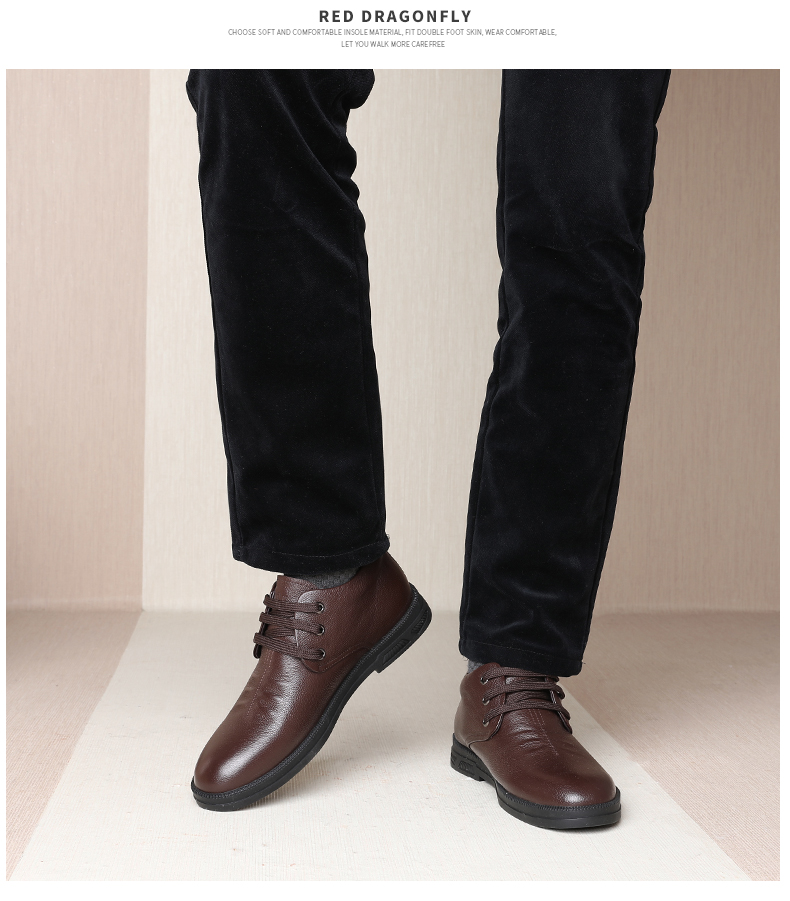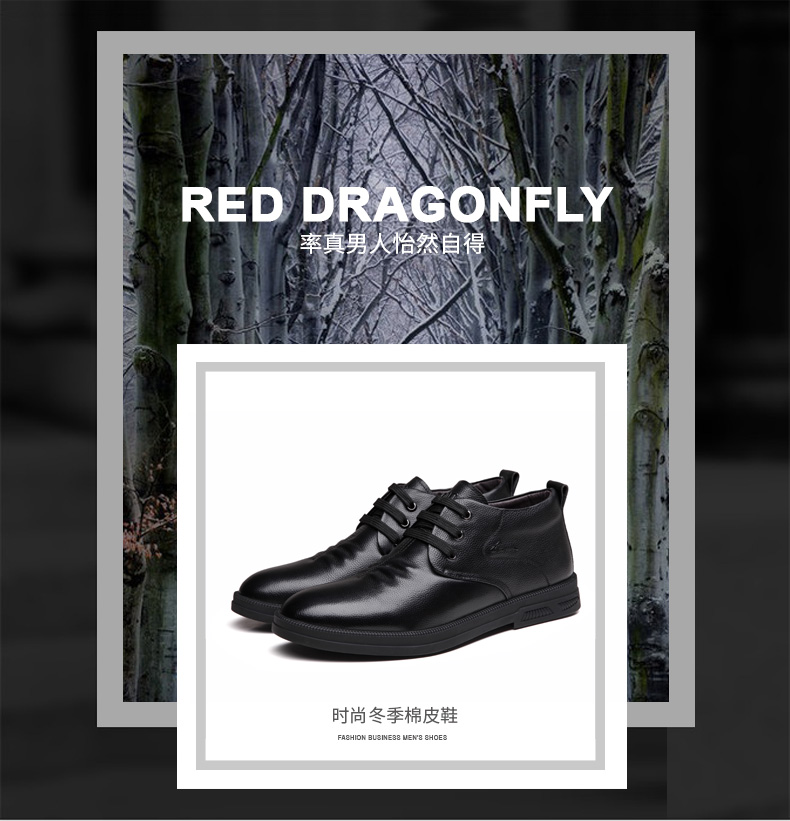 商品名称:红蜻蜓 真皮男棉鞋冬季新品商务休闲棉鞋牛皮高帮保暖皮鞋
