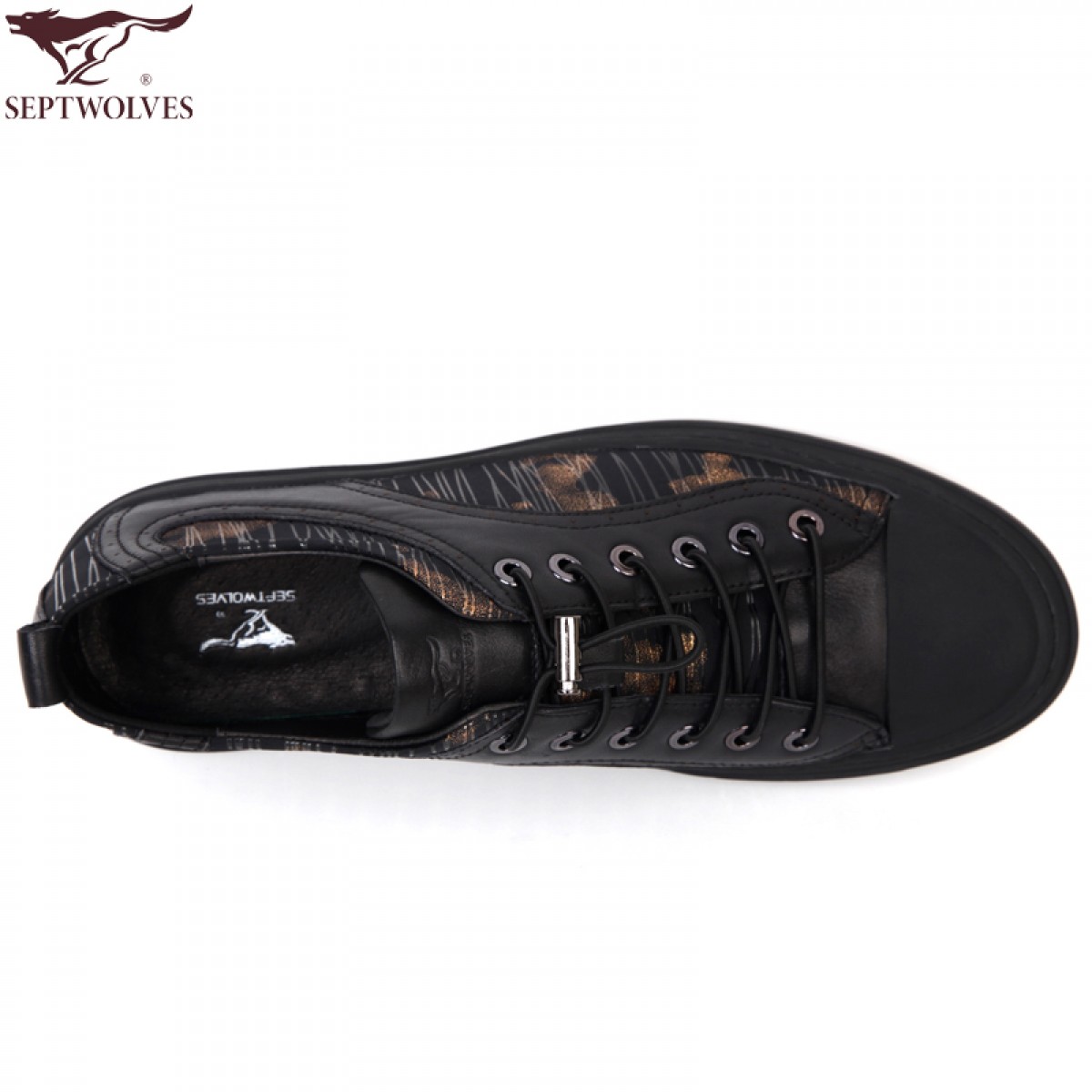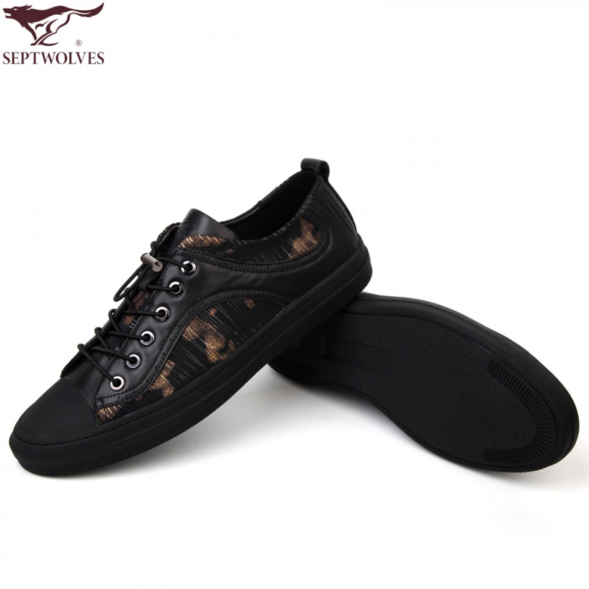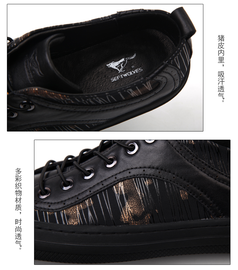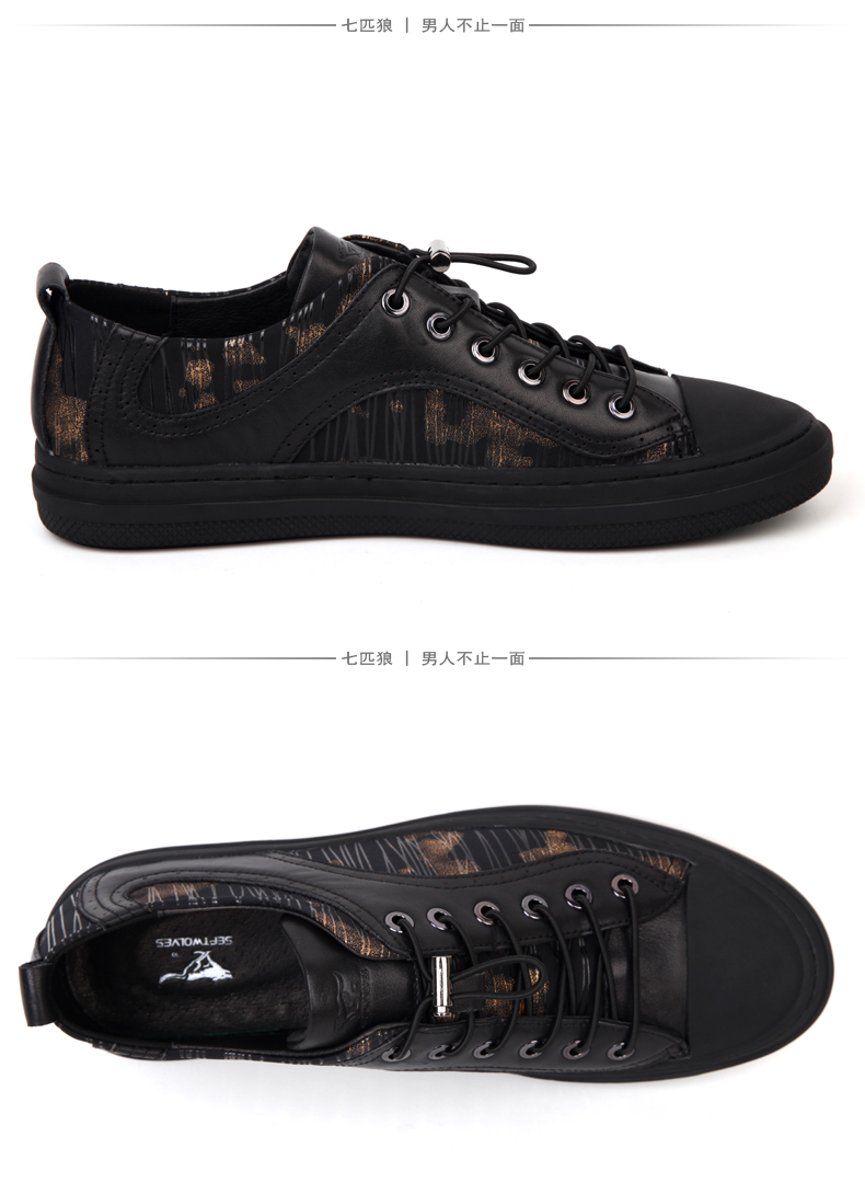 七匹狼 男鞋新款头层牛皮配织物时尚潮流休闲平底系带男士布鞋子