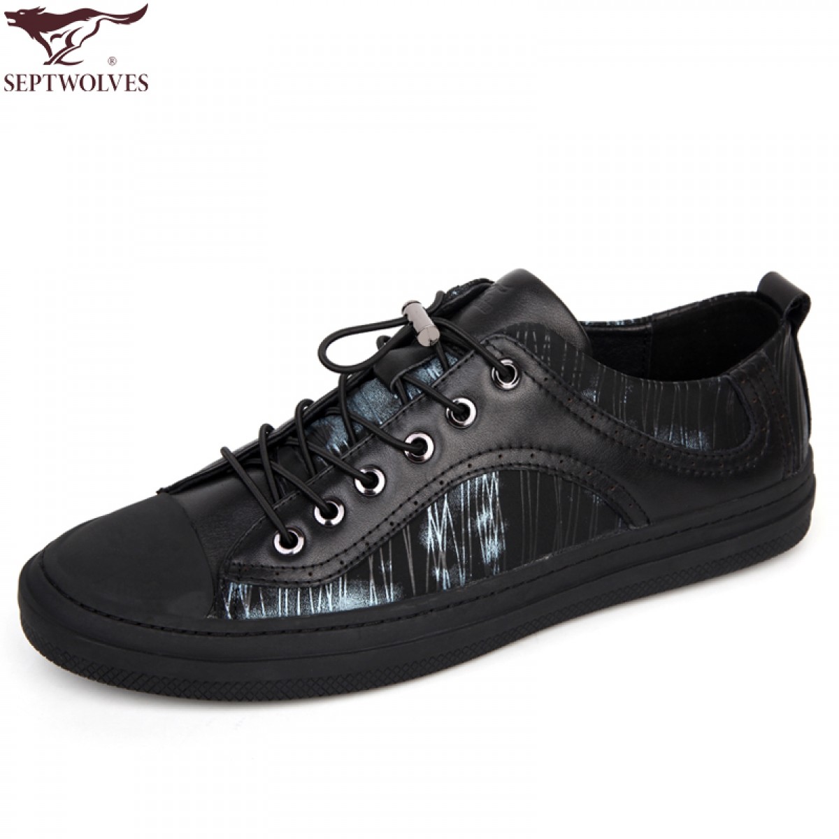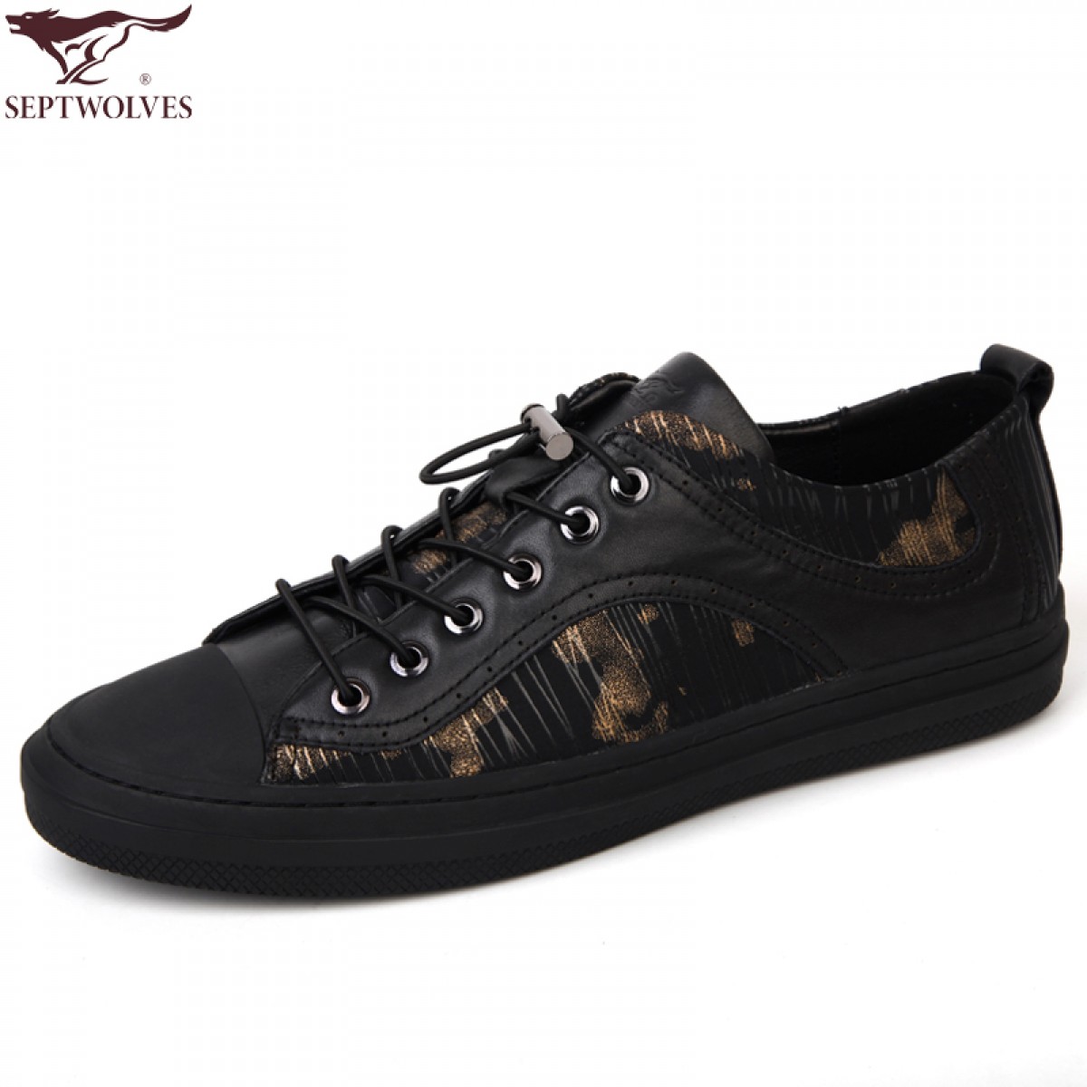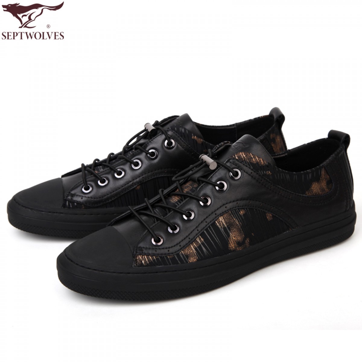七匹狼 男鞋新款头层牛皮配织物时尚潮流休闲平底系带男士布鞋子