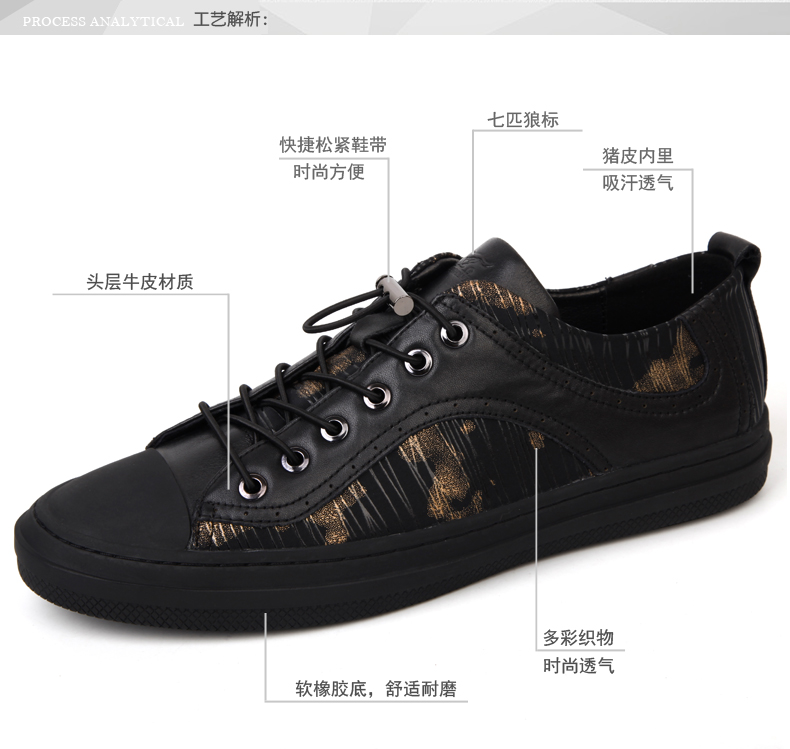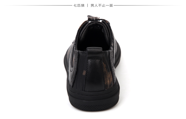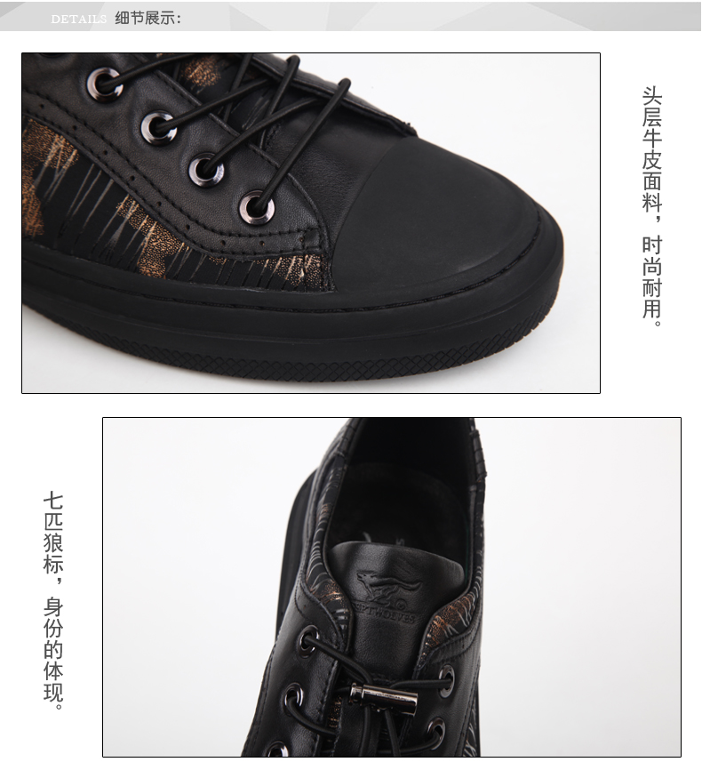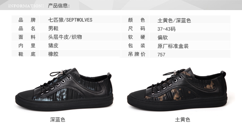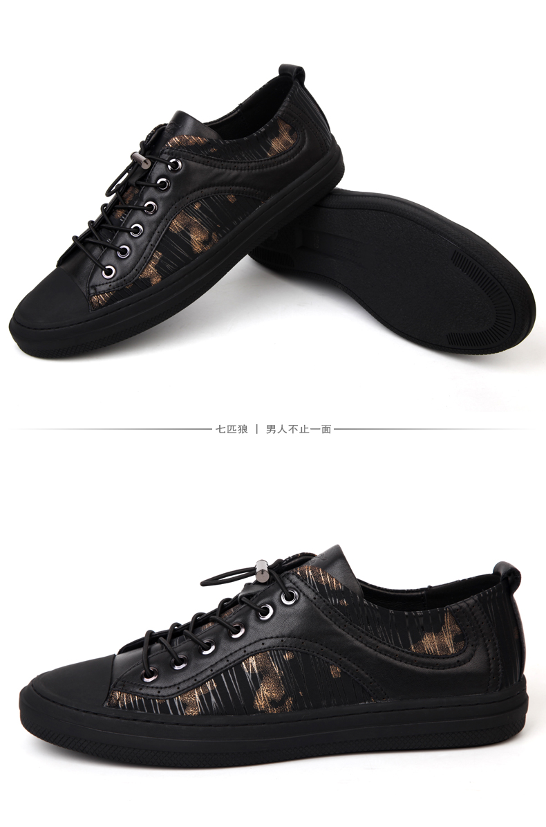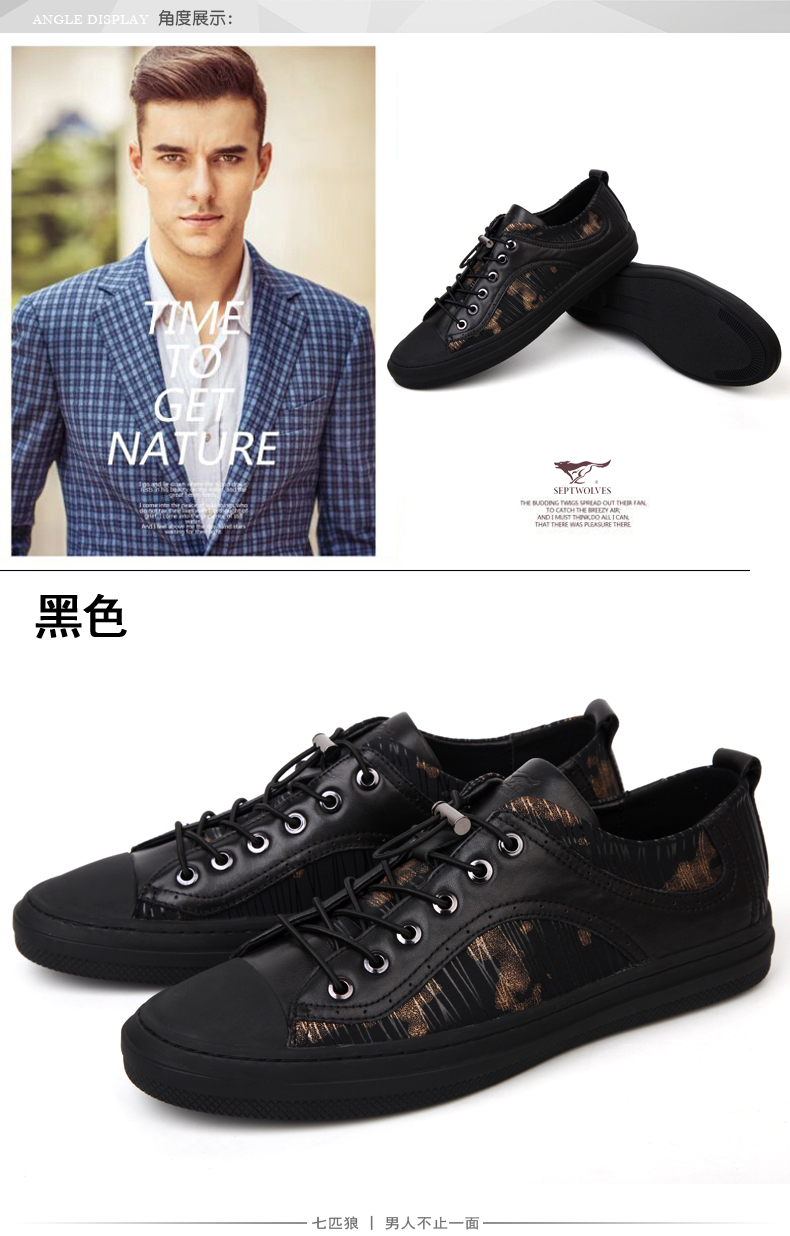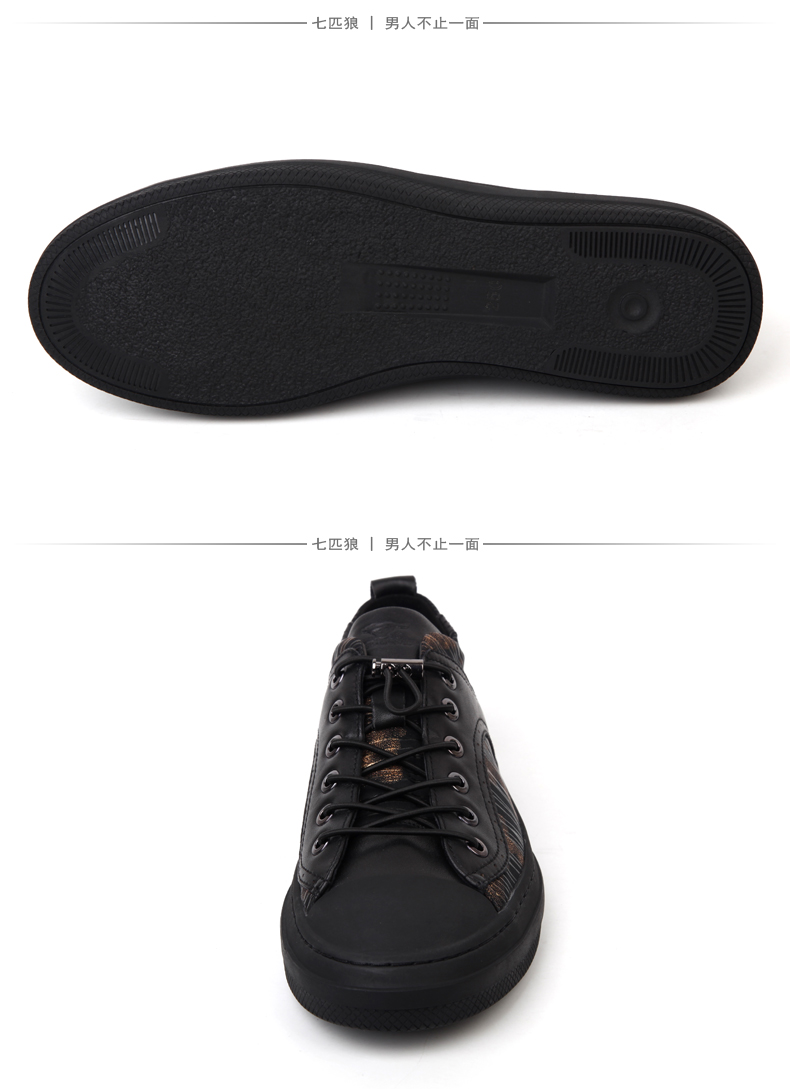 商品名称:七匹狼 男鞋新款头层牛皮配织物时尚潮流休闲平底系带男士布鞋子