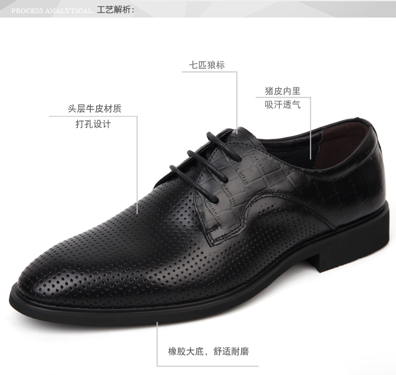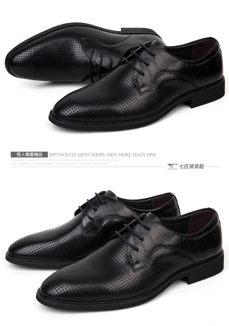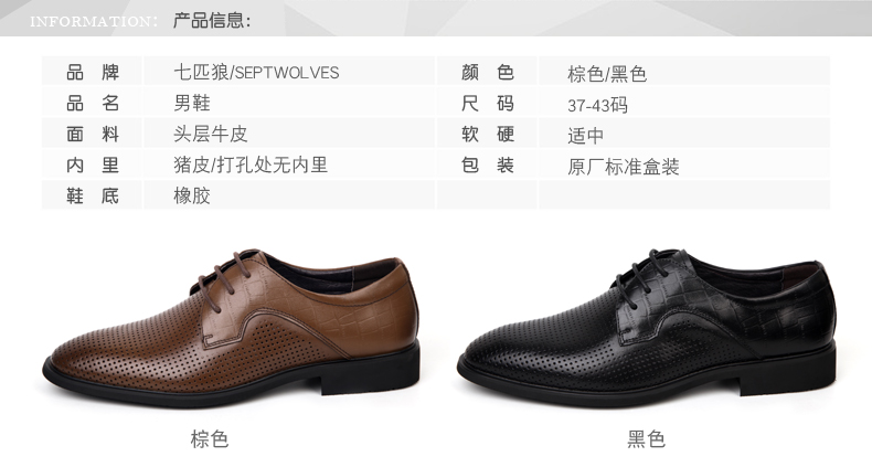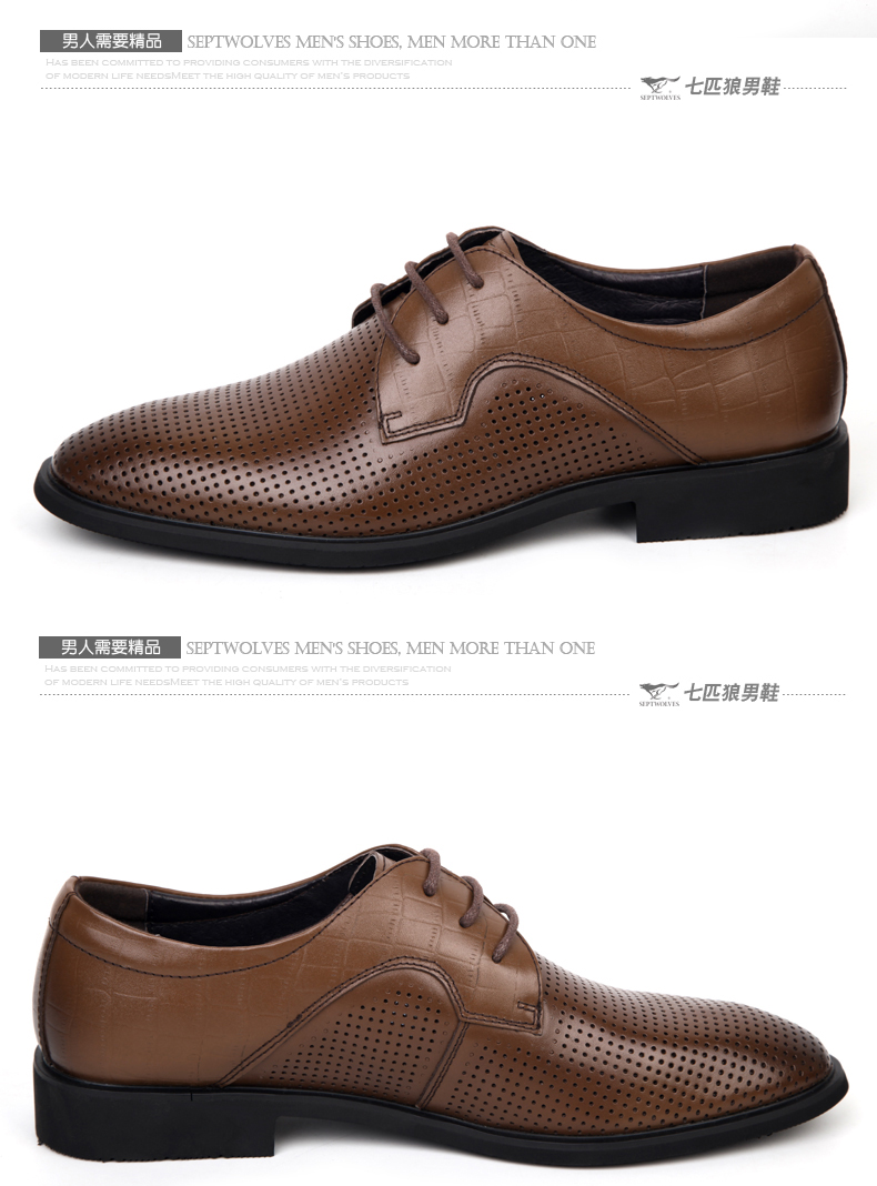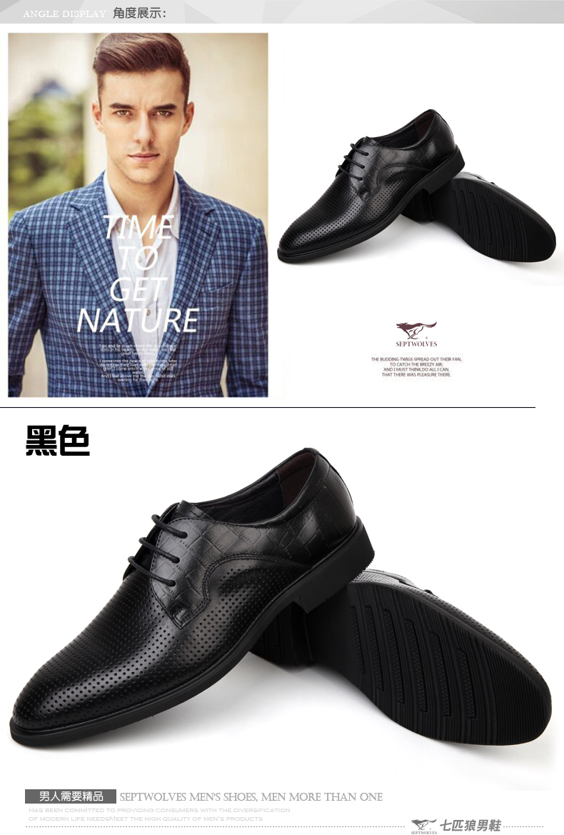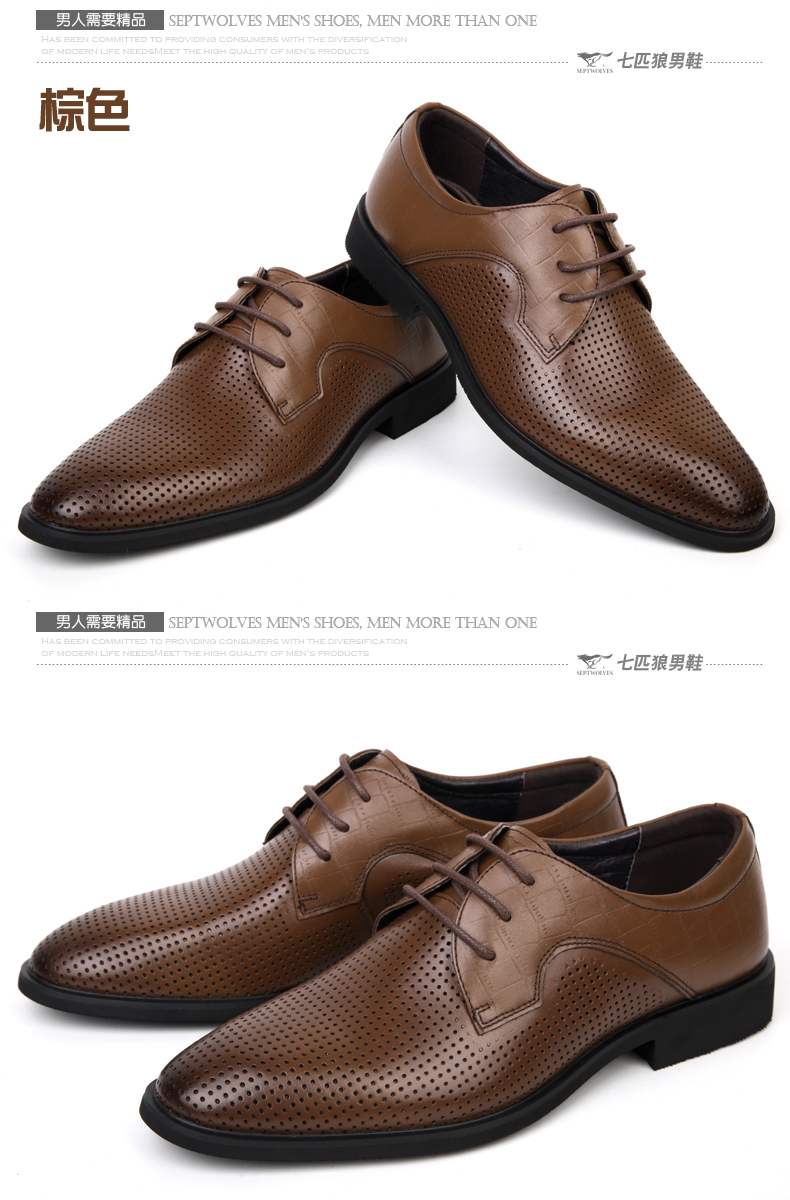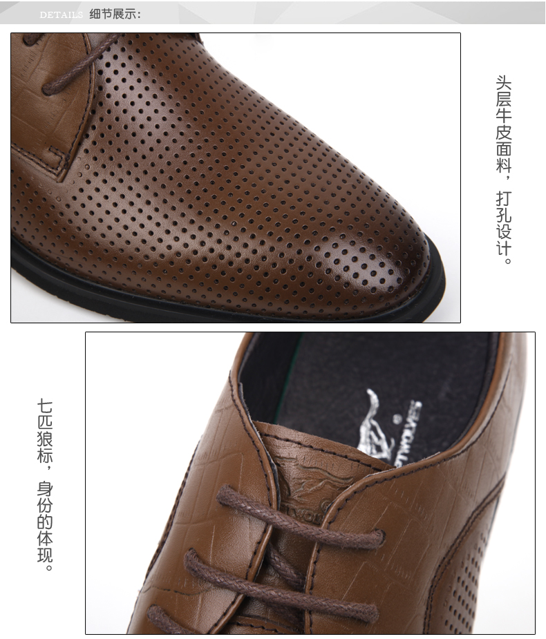 商品名称:七匹狼 皮凉鞋头层牛皮镂空打孔男鞋夏季透气真皮系带正装皮鞋