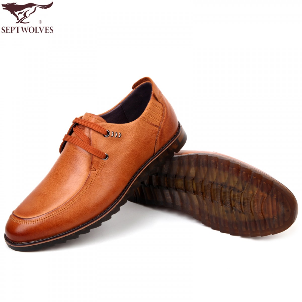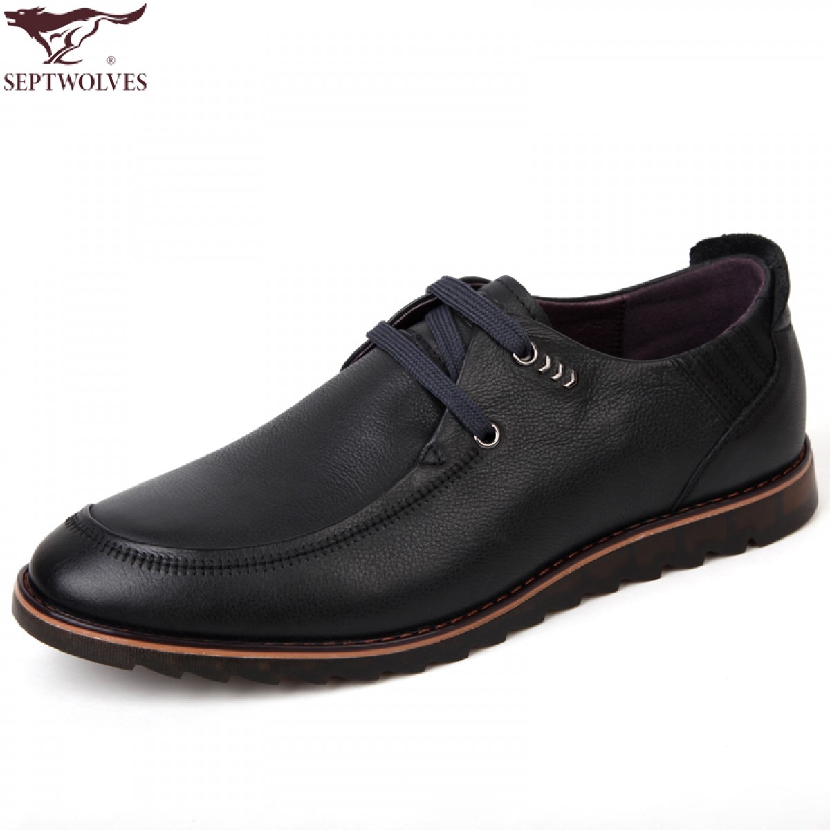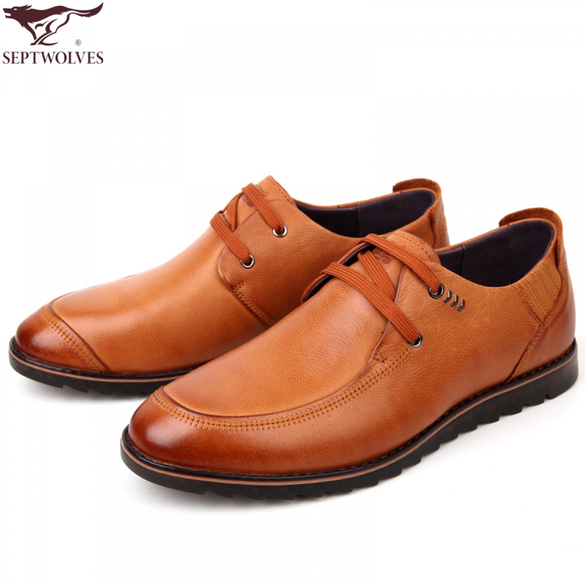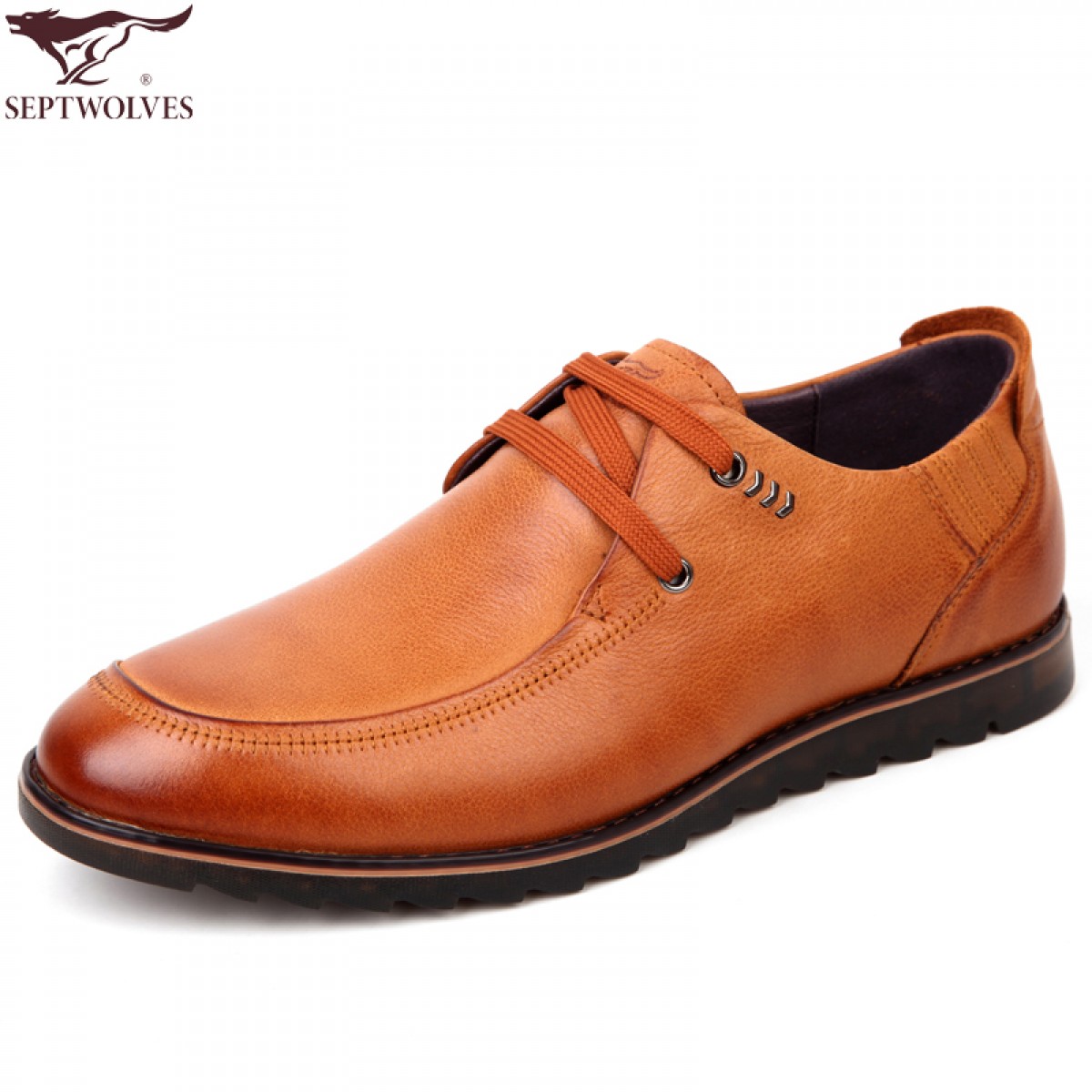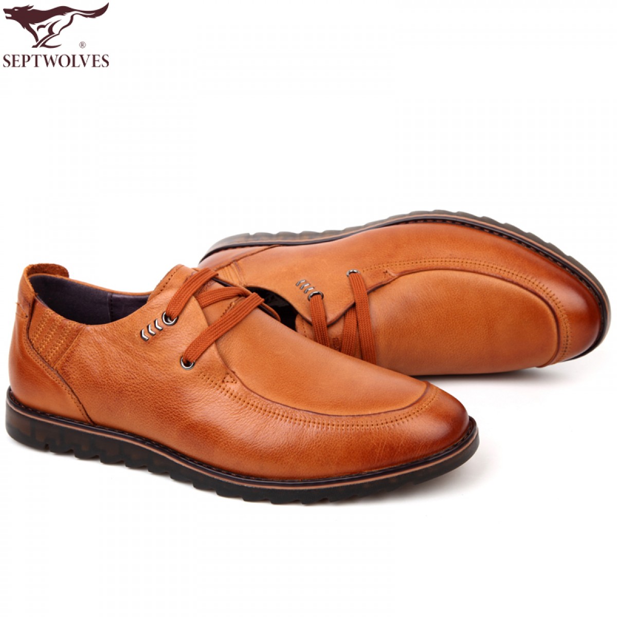 七匹狼 男鞋新款头层牛皮男士时尚透气休闲系带真皮皮鞋子