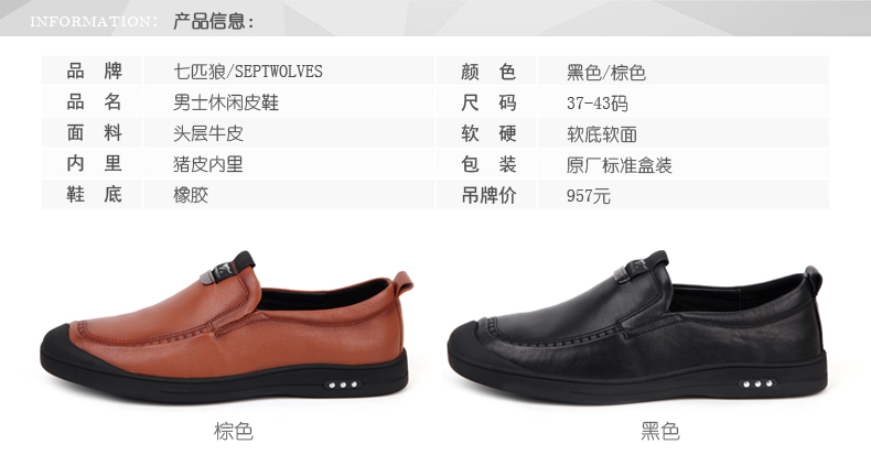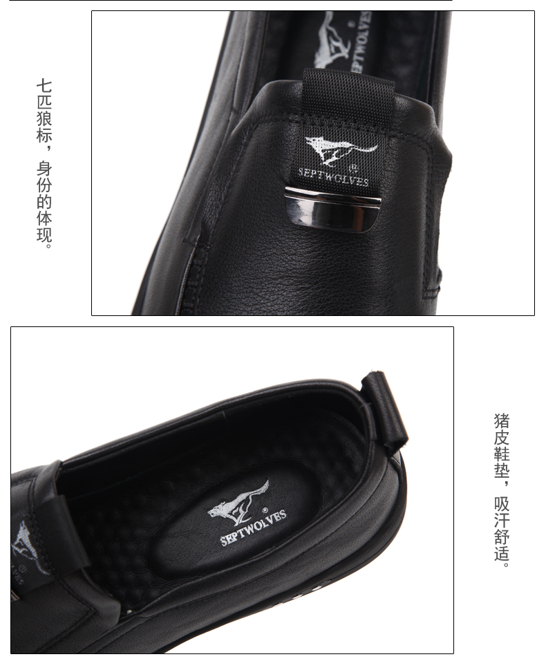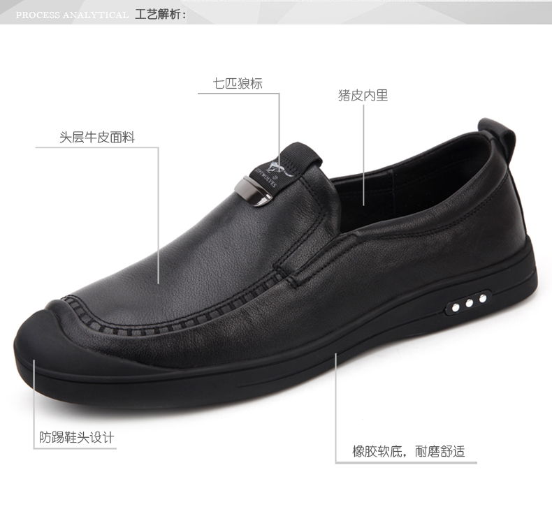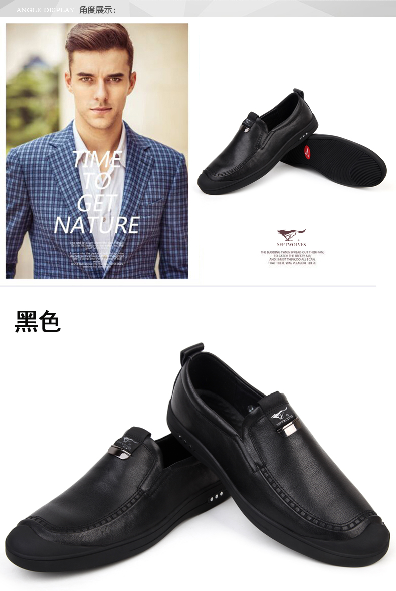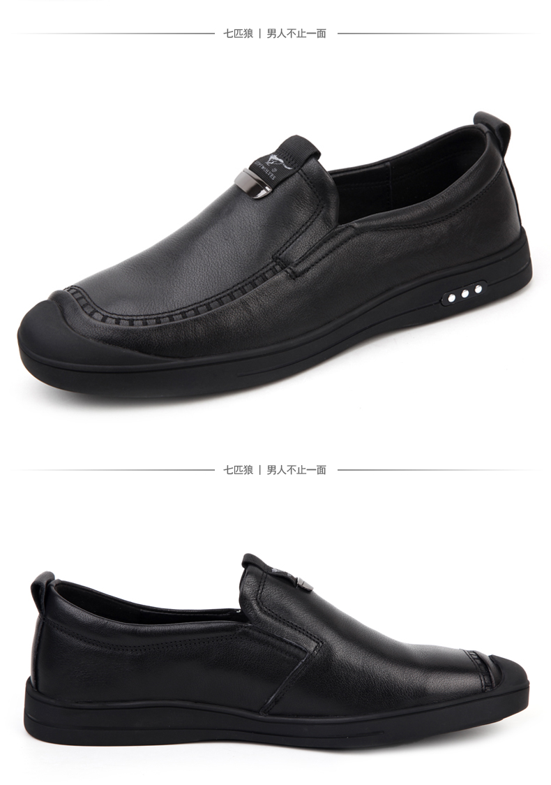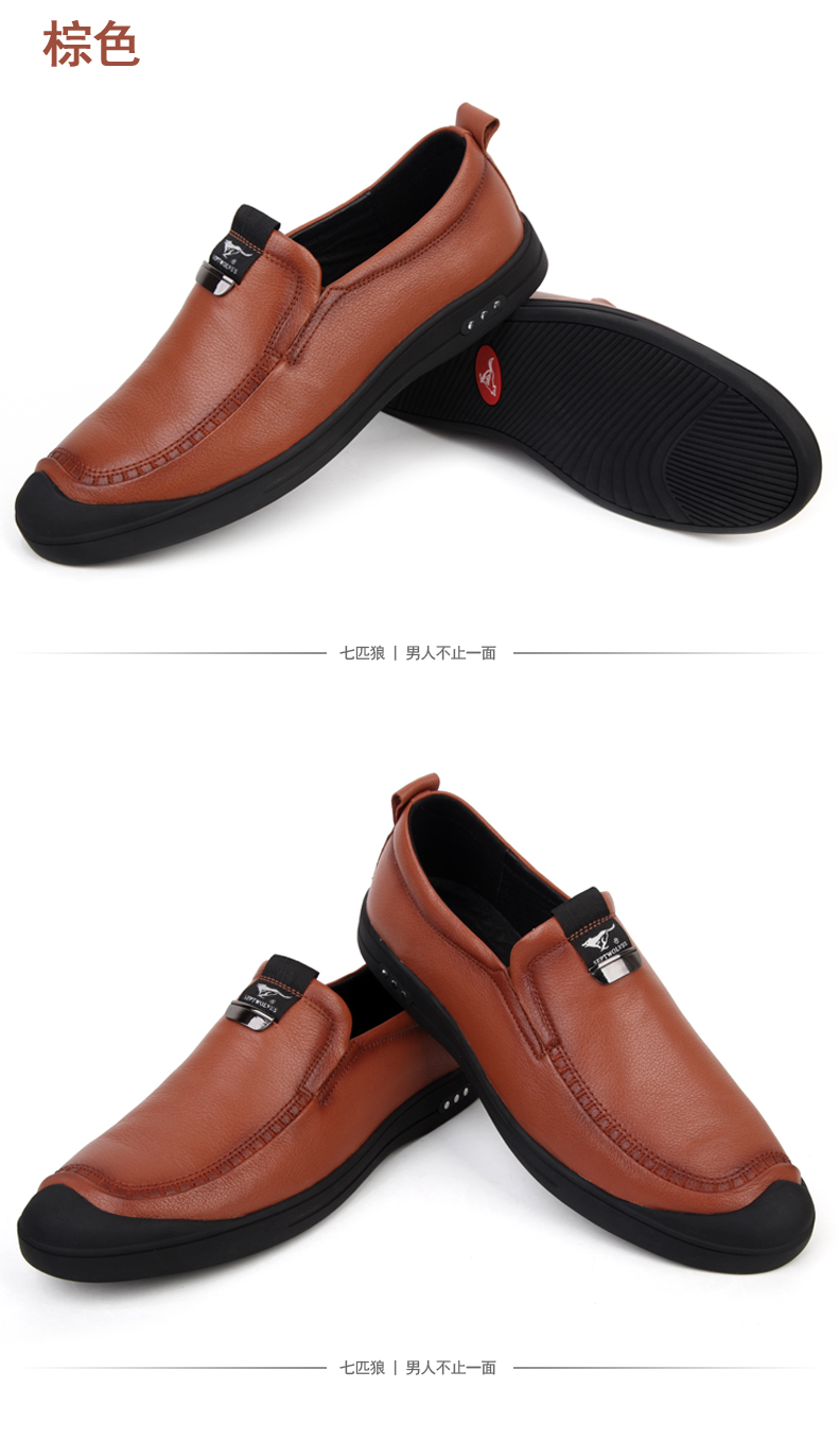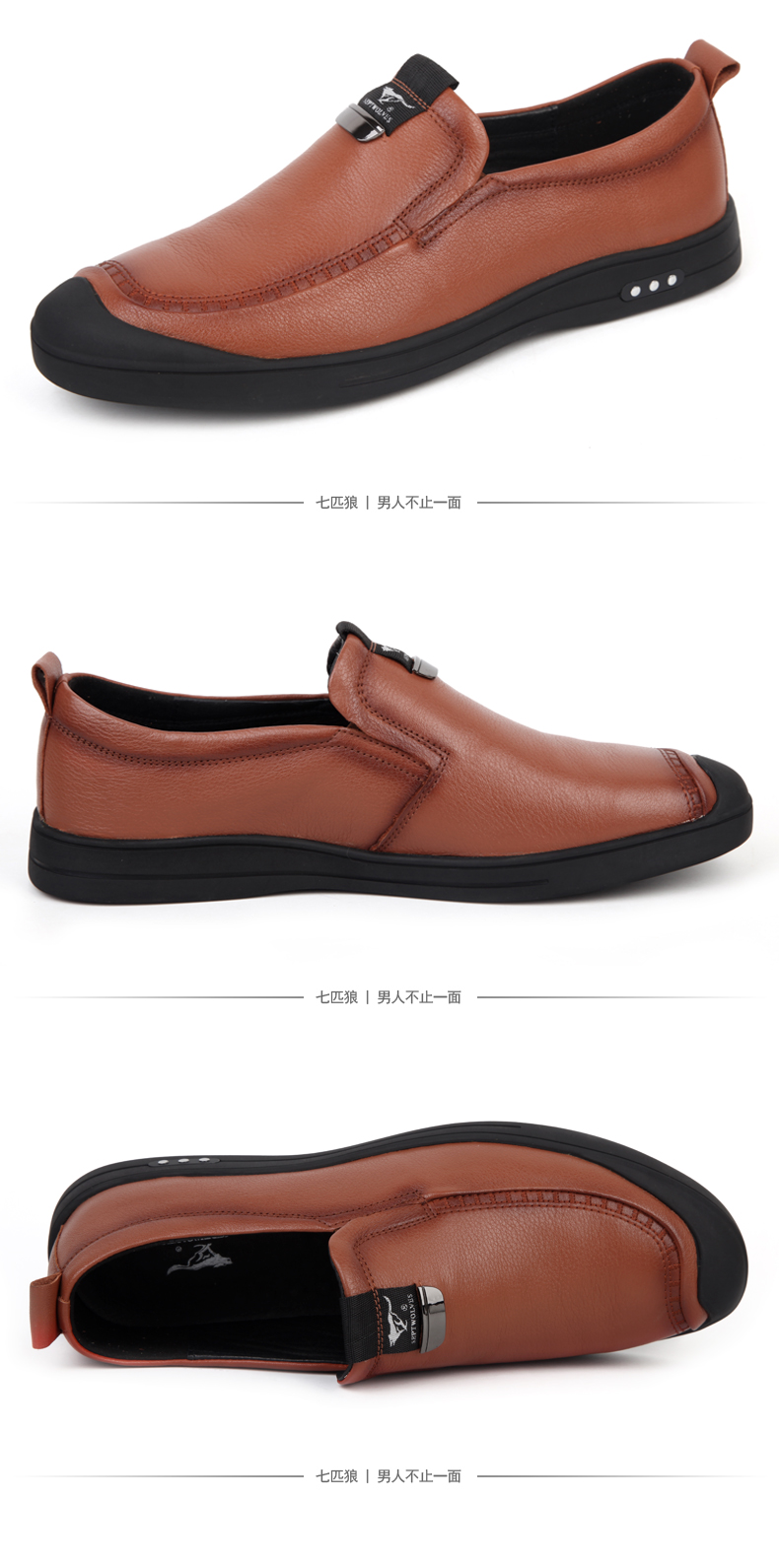 商品名称:七匹狼 新品头层牛皮真皮皮革日常休闲套脚软底男士皮鞋子