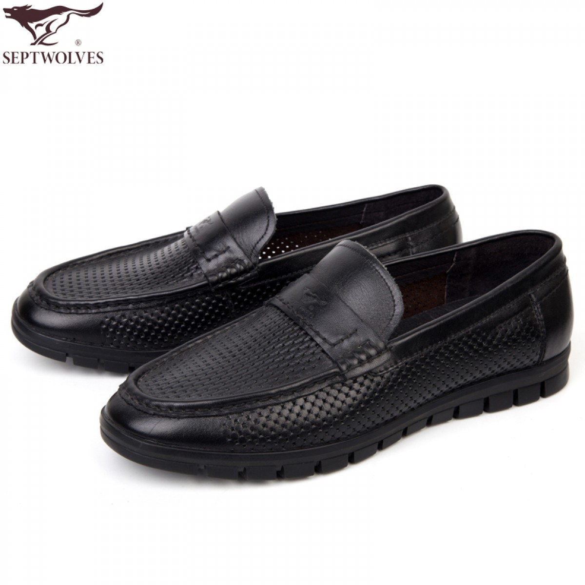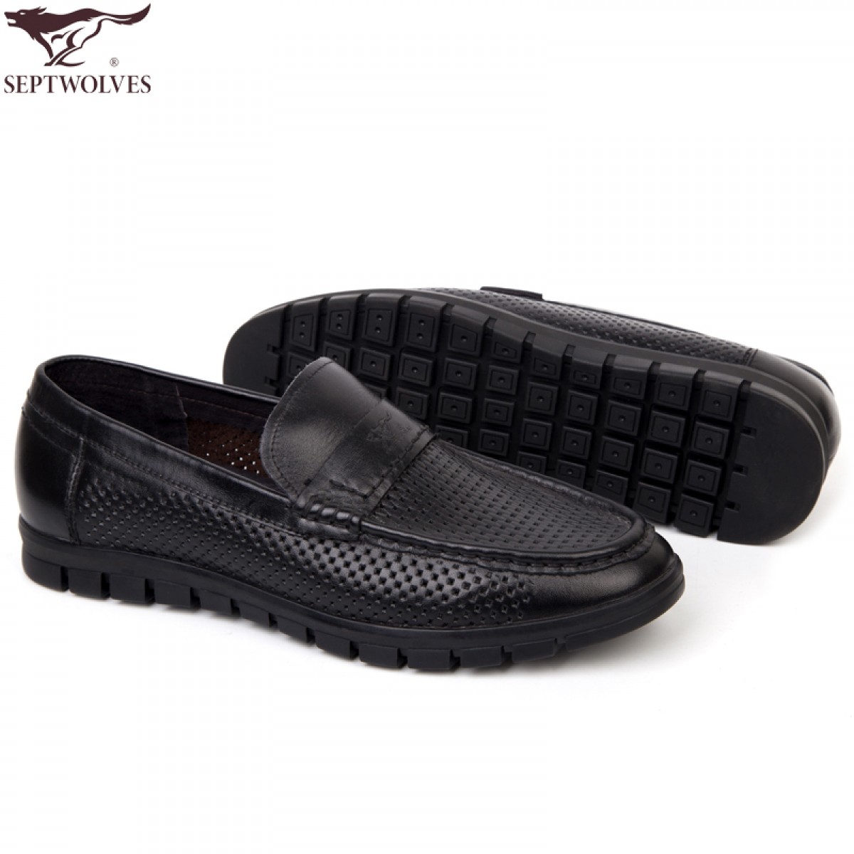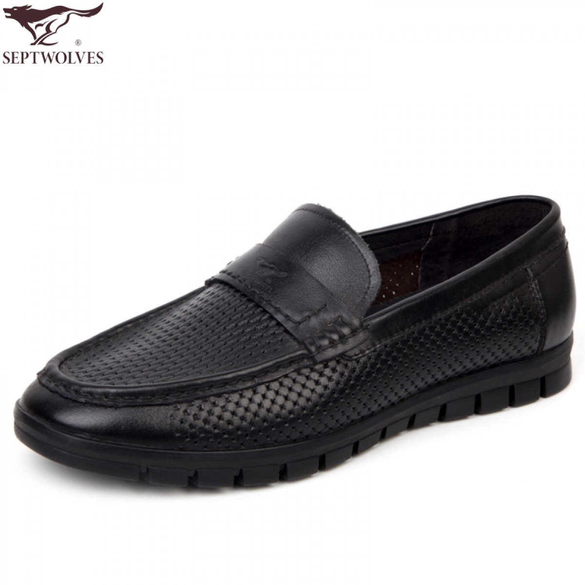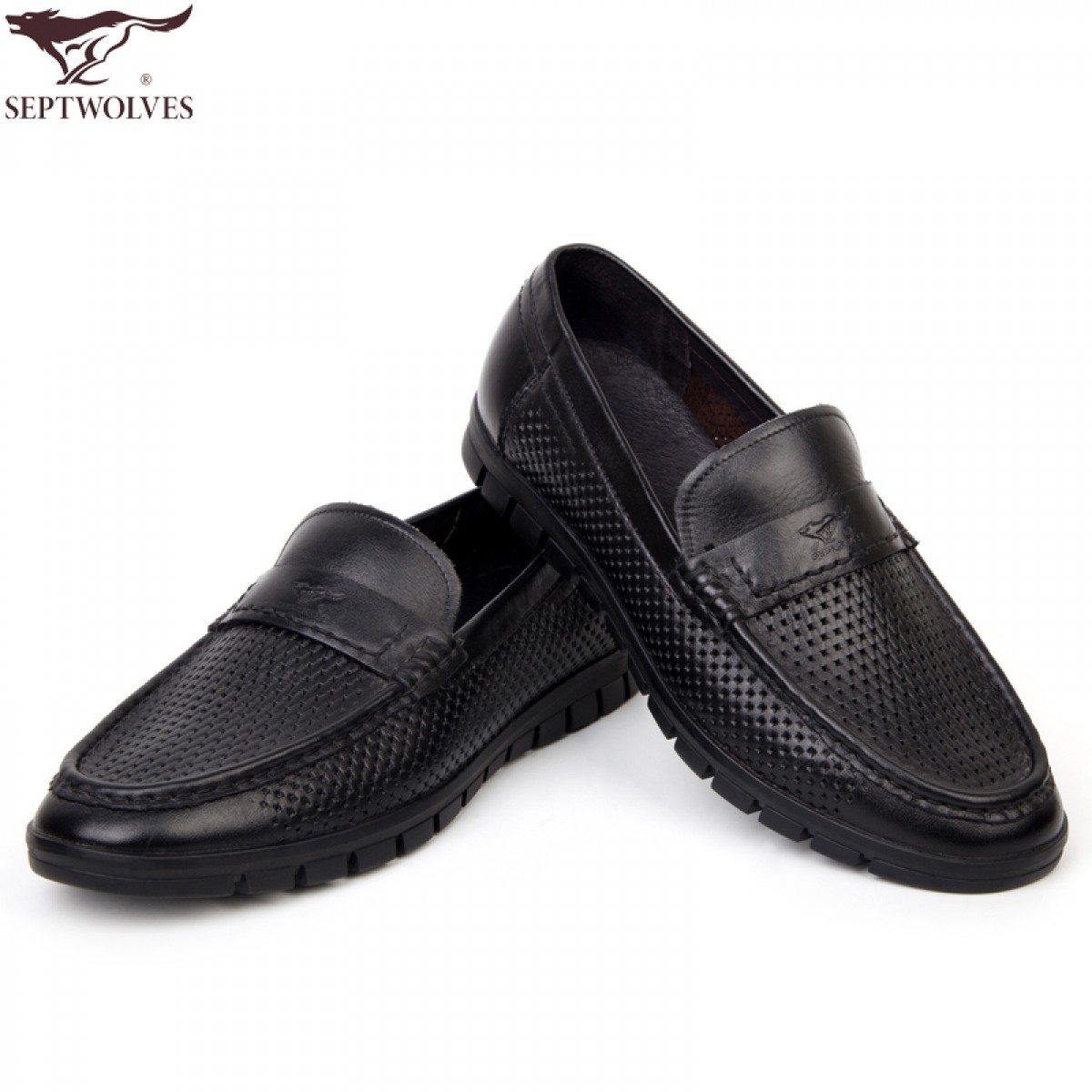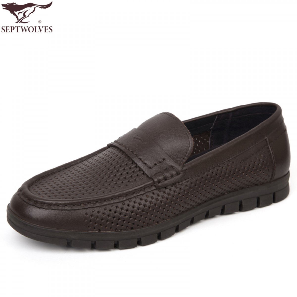 七匹狼 凉皮鞋小牛皮镂空打孔男鞋软底软面时尚休闲夏季真皮皮鞋子