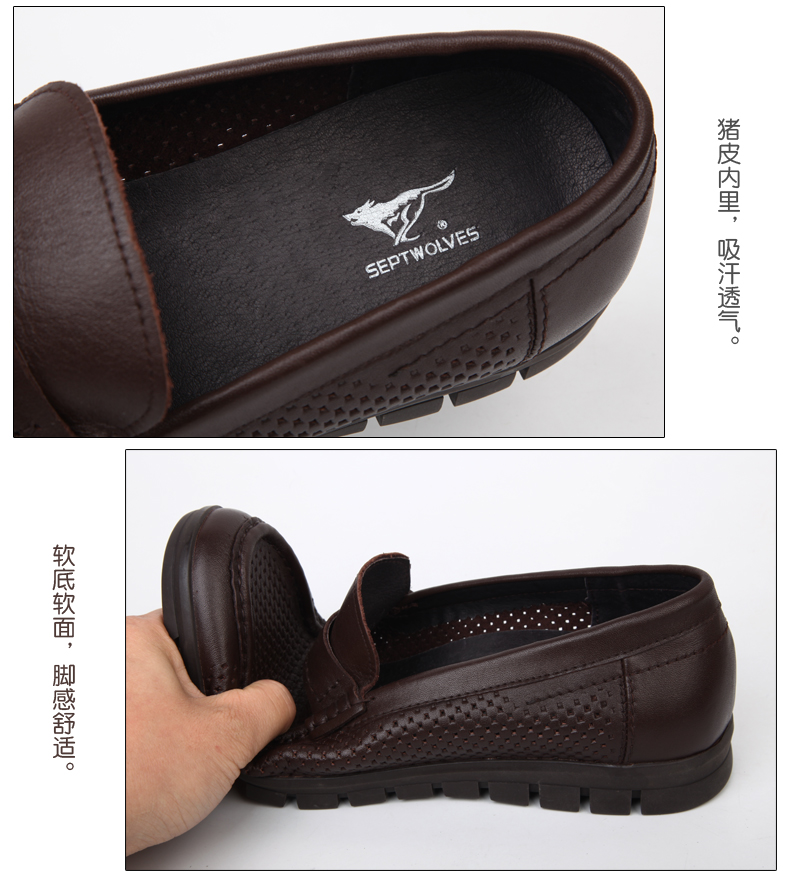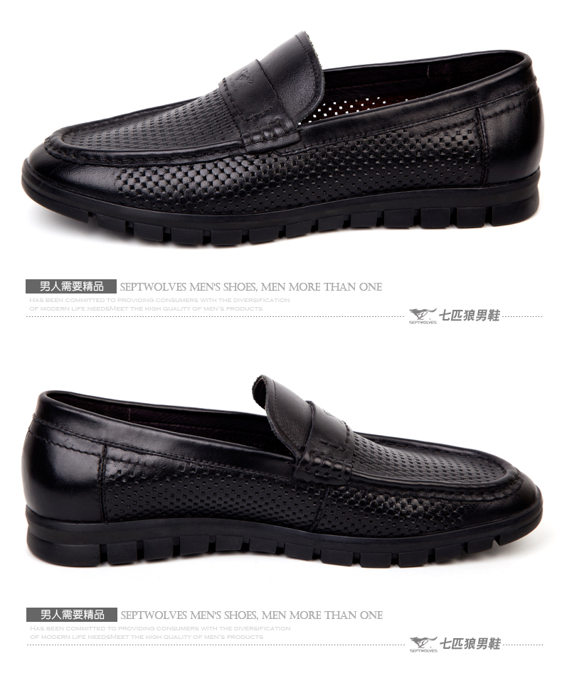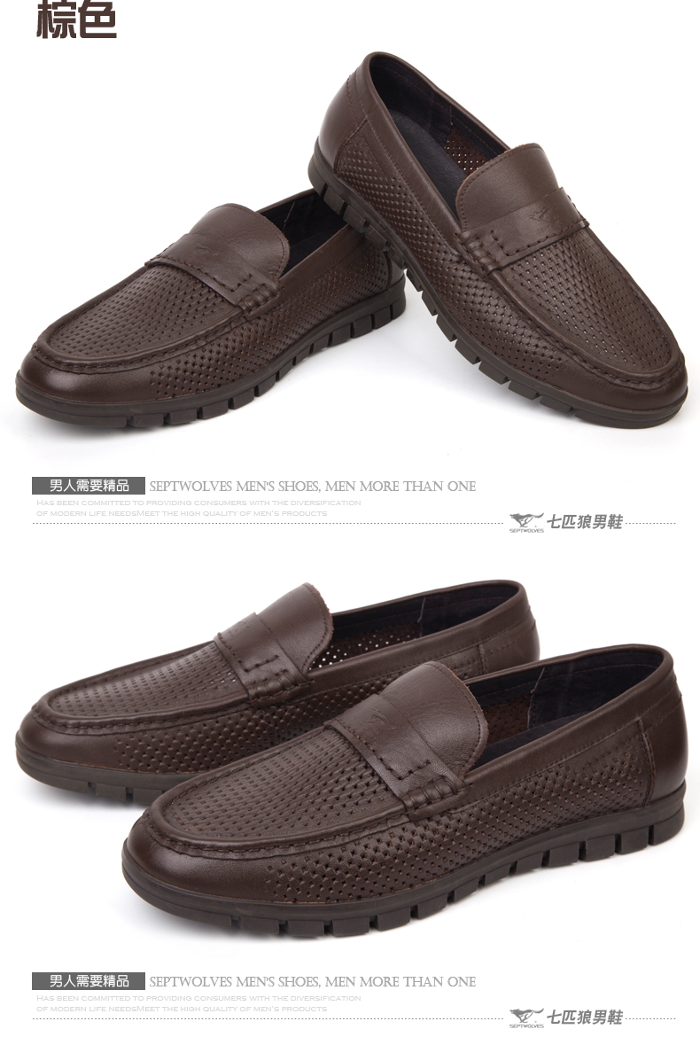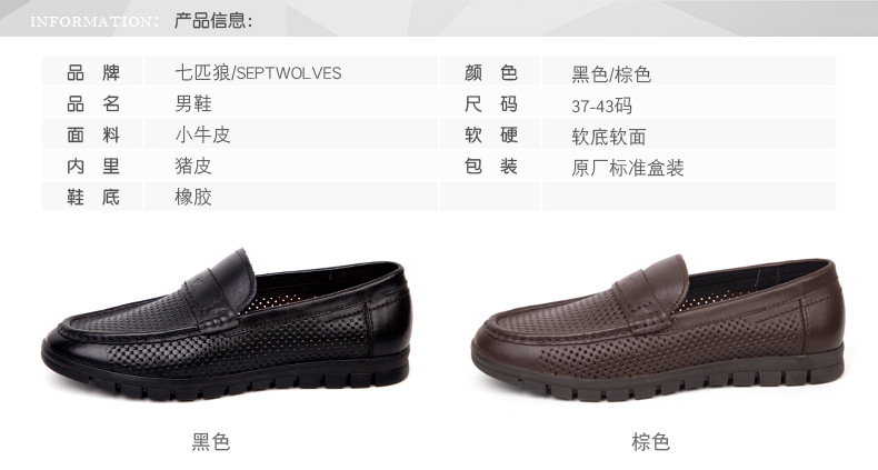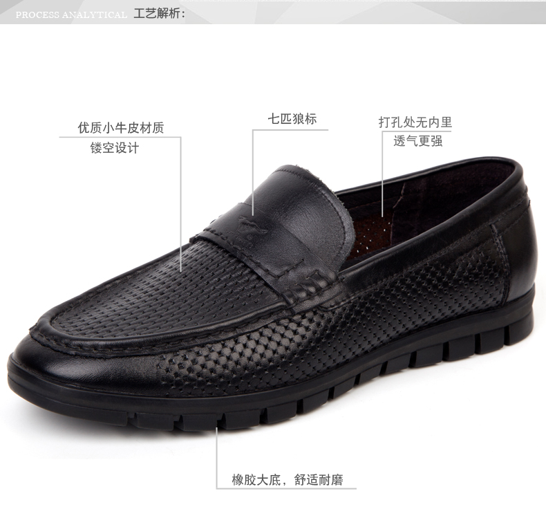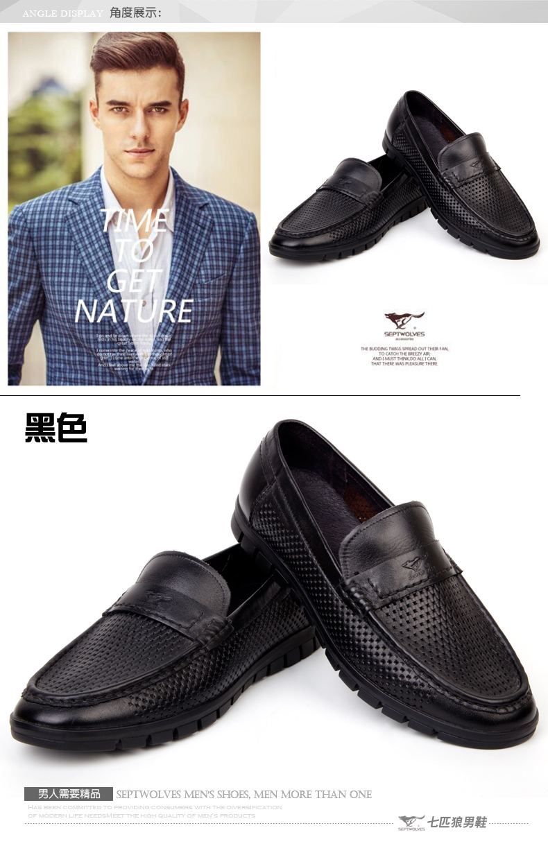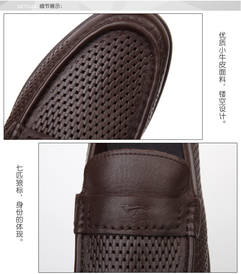 商品名称:七匹狼 凉皮鞋小牛皮镂空打孔男鞋软底软面时尚休闲夏季真皮皮鞋子