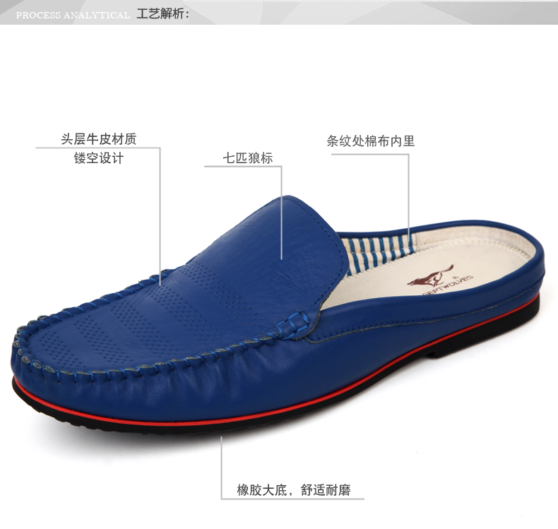 商品名称:七匹狼 皮凉鞋头层牛皮镂空打孔男士拖鞋时尚休闲夏季真皮男鞋