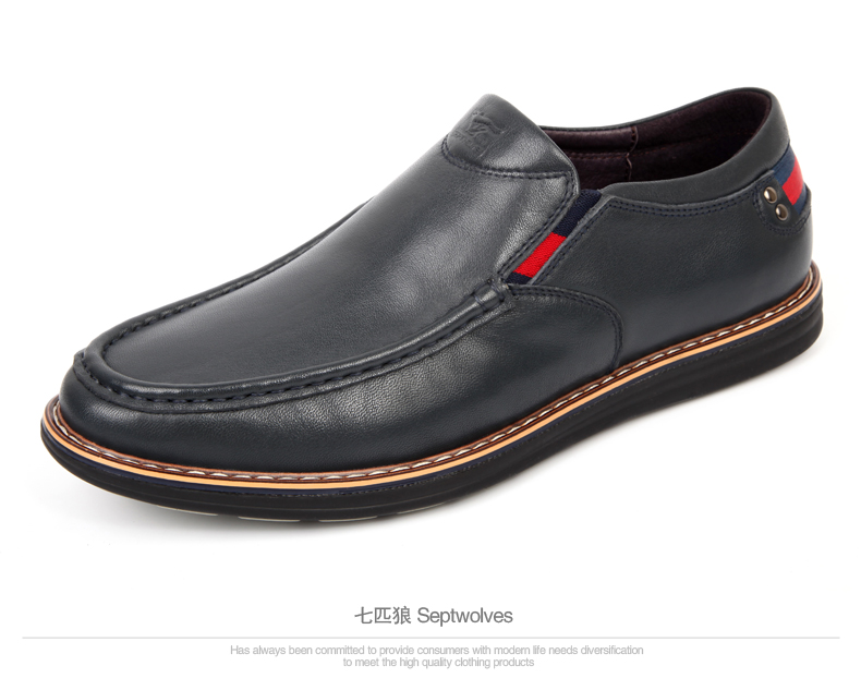 商品名称:七匹狼 男鞋头层牛皮男士商务休闲舒适真皮时尚套脚软面皮鞋子