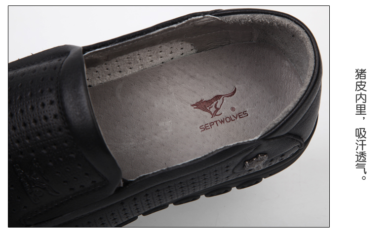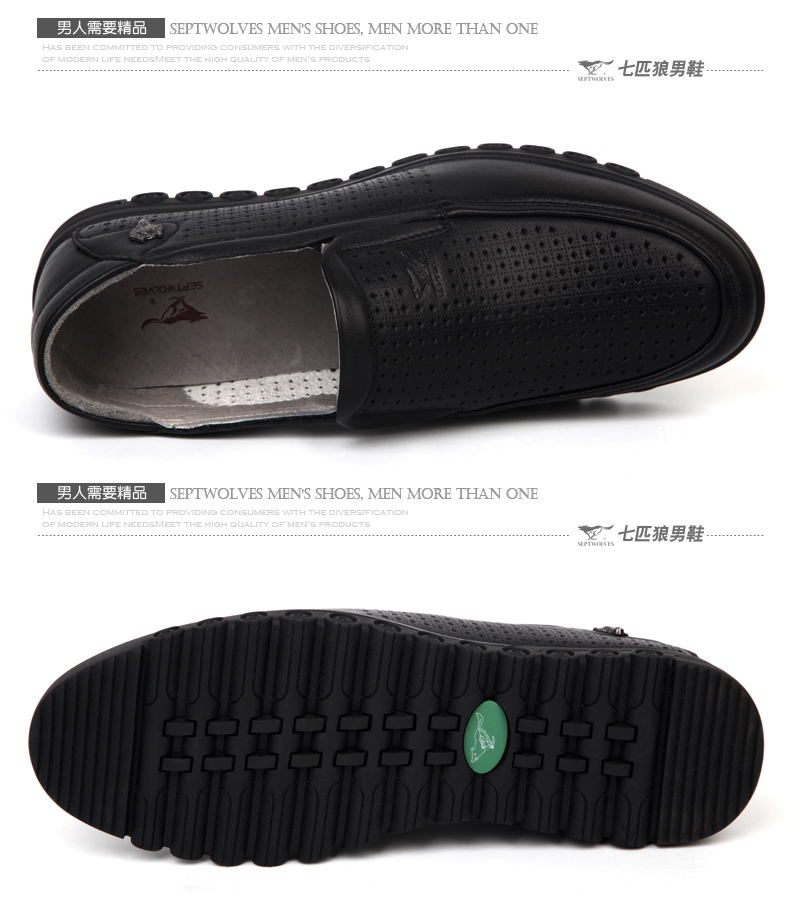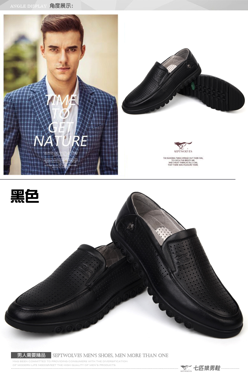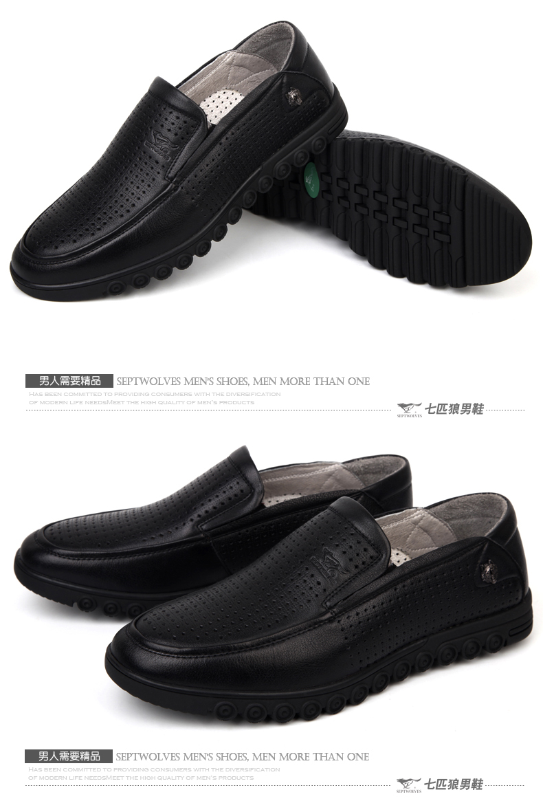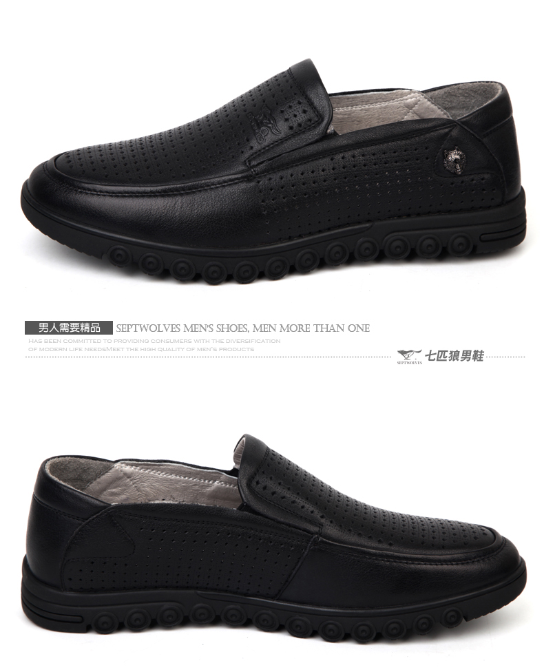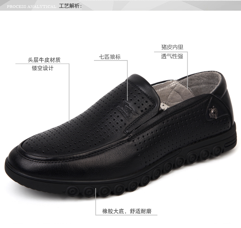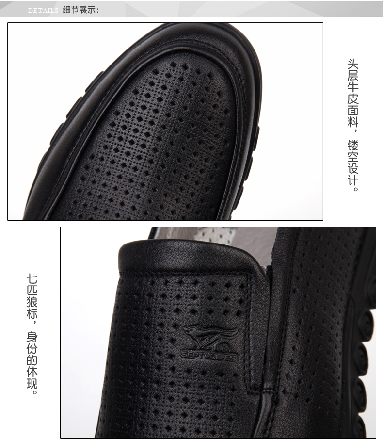 商品名称:七匹狼 皮凉鞋男士头层牛皮镂空打孔男鞋夏时尚透气真皮黑皮鞋