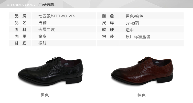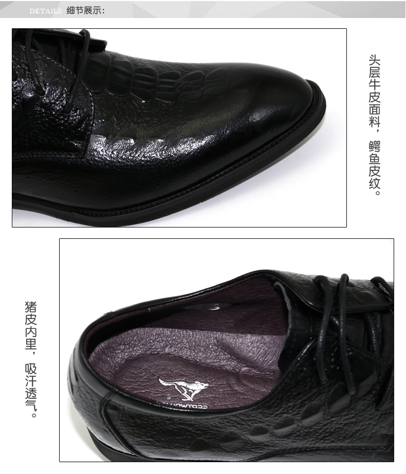 商品名称:七匹狼 男鞋新款头层牛皮鳄鱼皮纹男士正装真皮系带皮鞋子