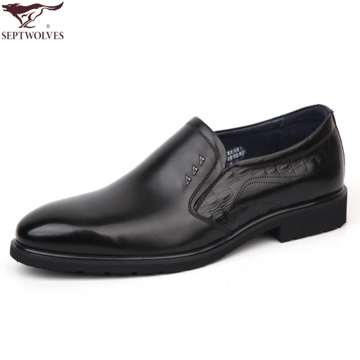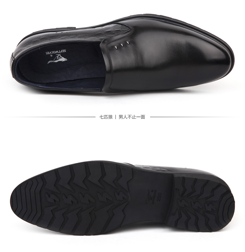 七匹狼 男鞋新款头层牛皮雕花套脚时尚商务正装男士皮鞋子