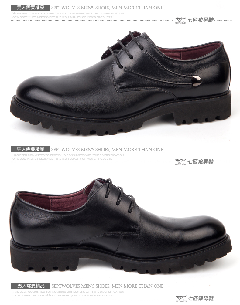 七匹狼 男鞋头层牛皮轻质鞋底男士系带商务休闲大头皮鞋子