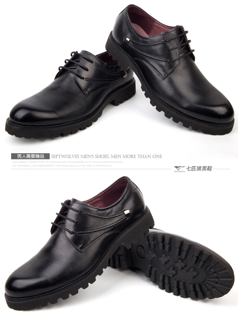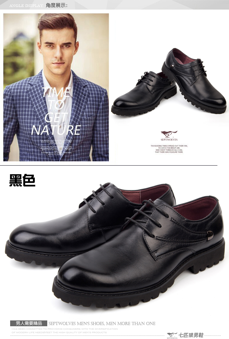 商品名称:七匹狼 男鞋头层牛皮轻质鞋底男士系带商务休闲大头皮鞋子