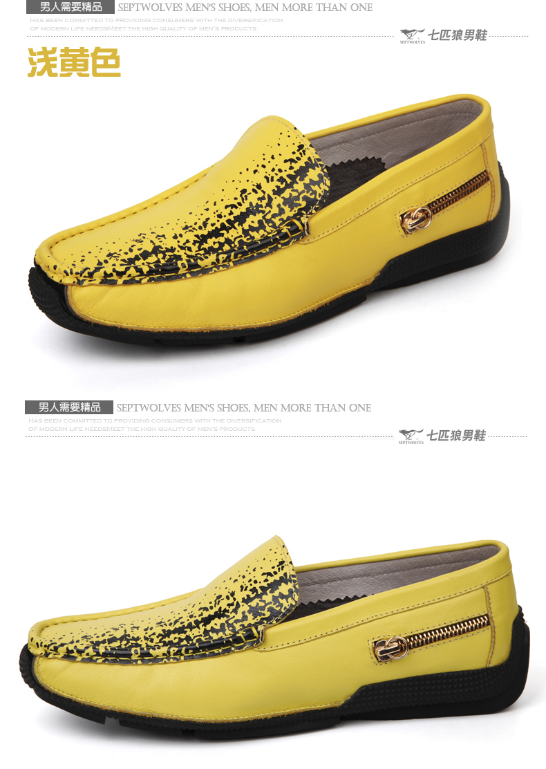 七匹狼 男鞋头层牛皮男士日常休闲时尚潮流透气套脚真皮皮鞋子