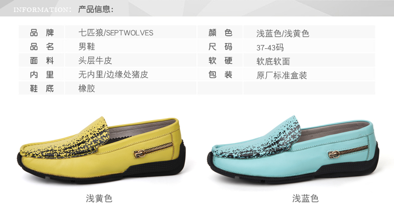 商品名称:七匹狼 男鞋头层牛皮男士日常休闲时尚潮流透气套脚真皮皮鞋子