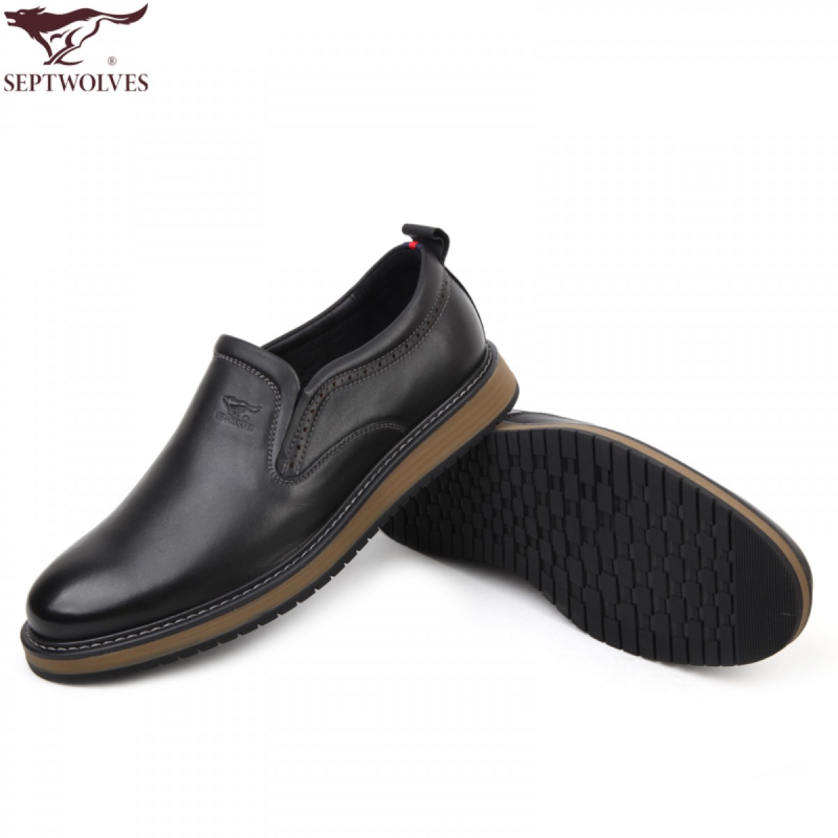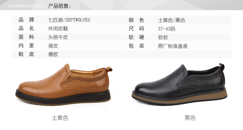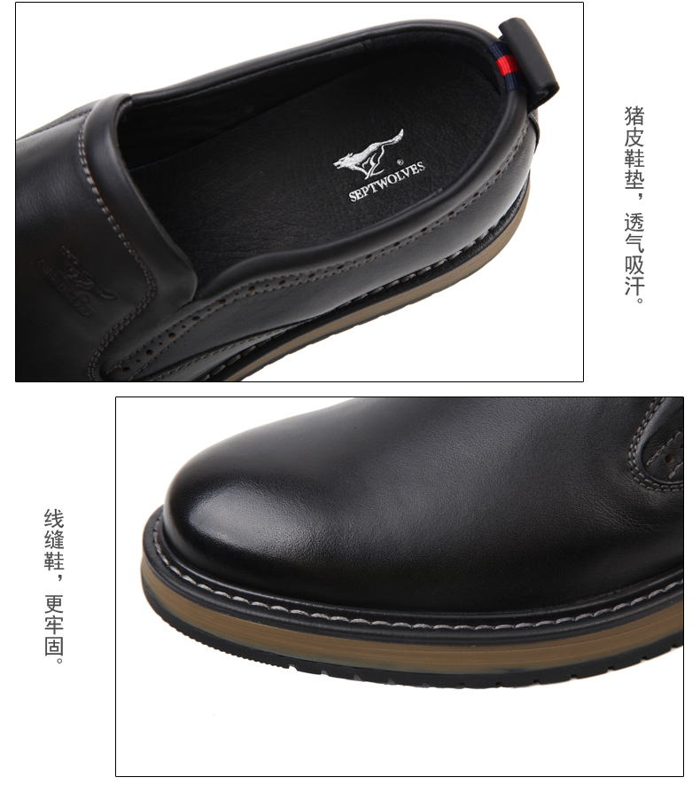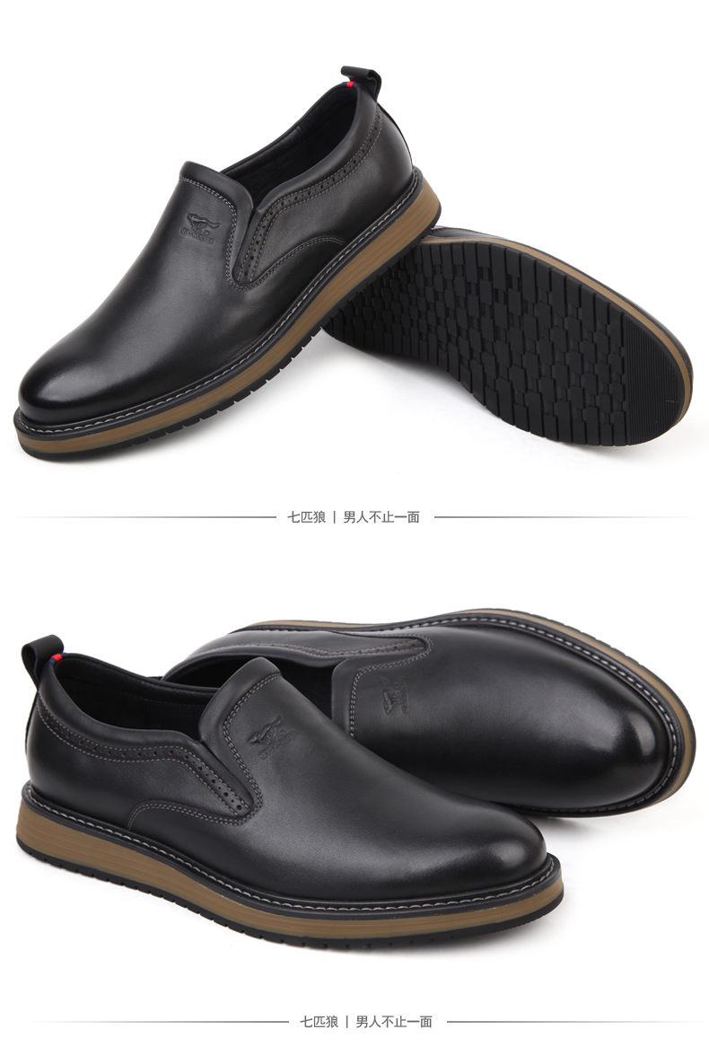 商品名称:七匹狼 男鞋秋季新款头层牛皮套脚线缝皮鞋真皮休闲耐磨男鞋子