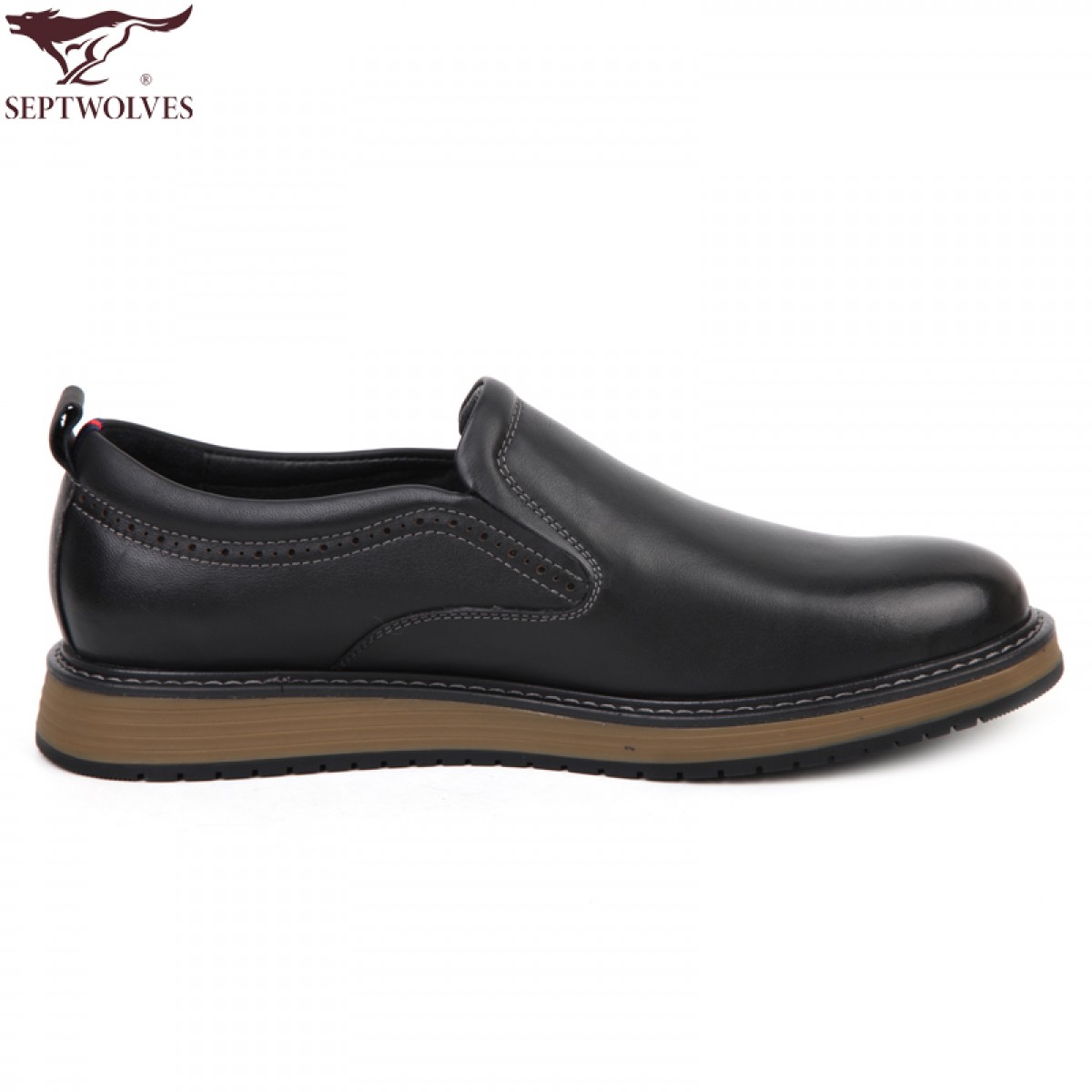 七匹狼 男鞋秋季新款头层牛皮套脚线缝皮鞋真皮休闲耐磨男鞋子
