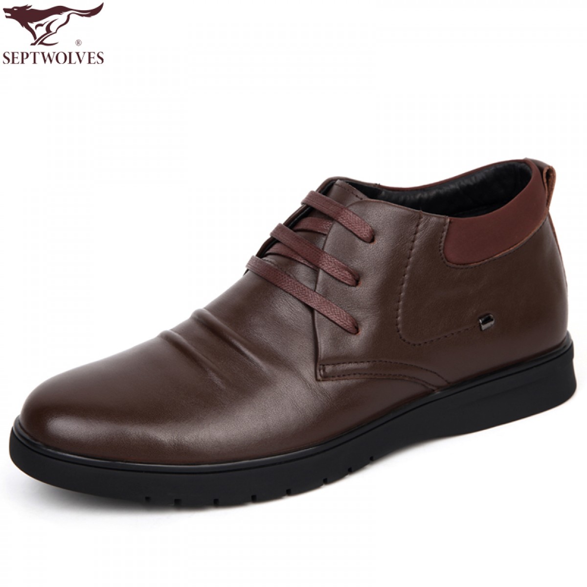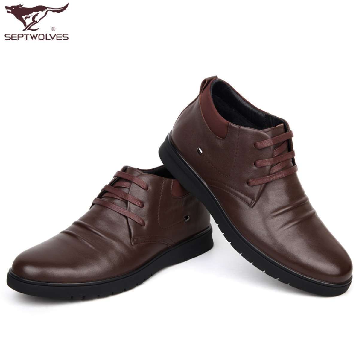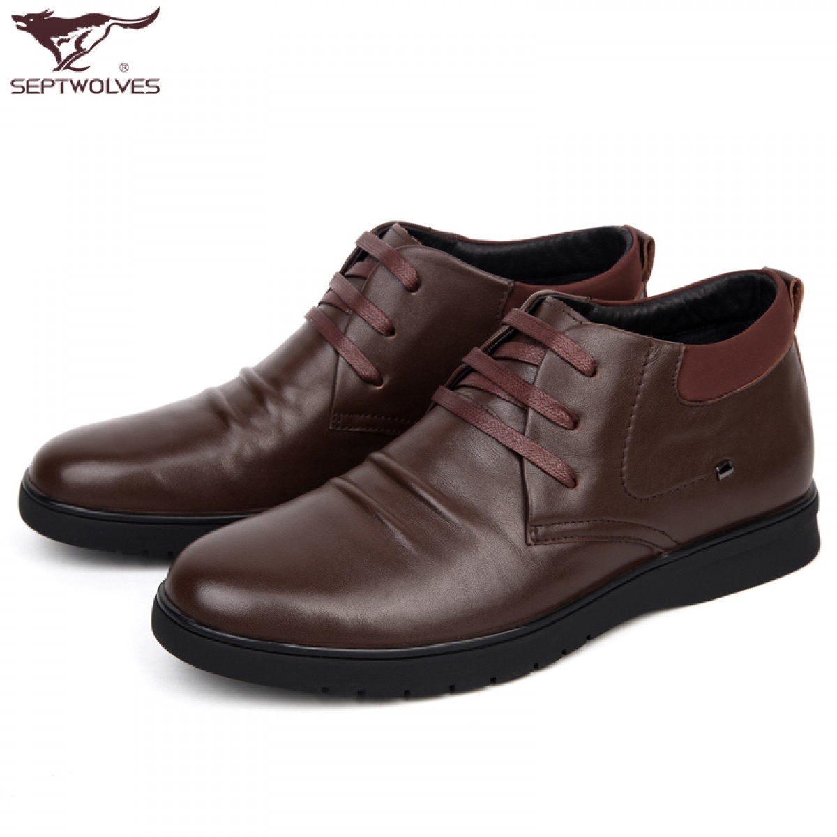 七匹狼 棉鞋冬季新款头层牛皮软底软面加绒保暖高帮男士真皮毛皮鞋