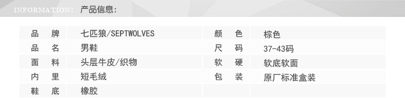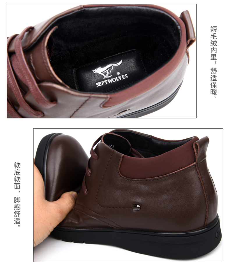 商品名称:七匹狼 棉鞋冬季新款头层牛皮软底软面加绒保暖高帮男士真皮毛皮鞋