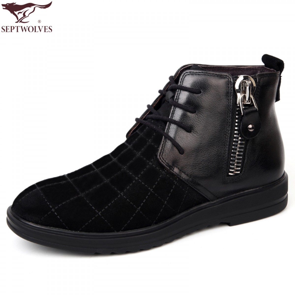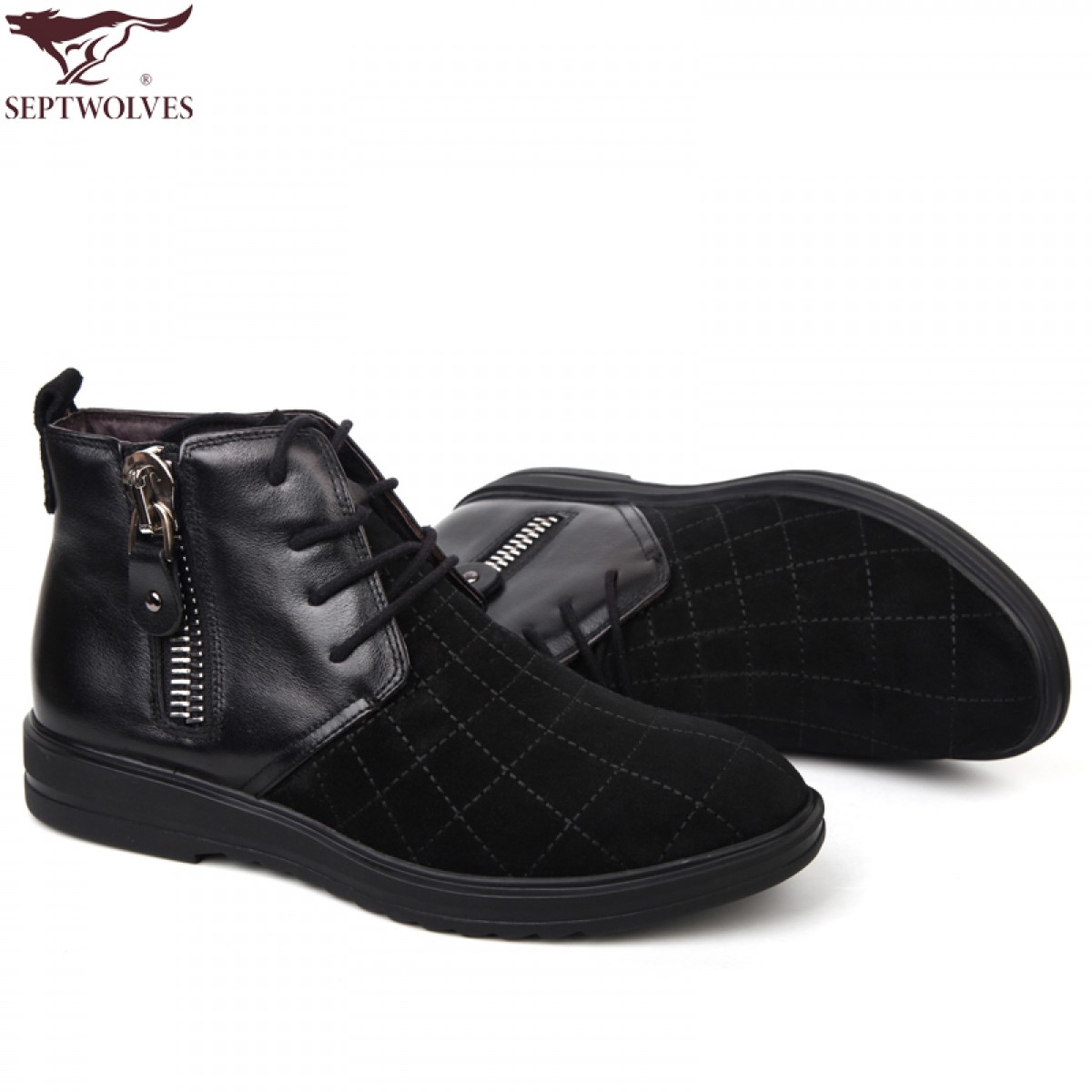 商品名称:七匹狼 棉鞋冬季磨砂头层牛皮拉链真皮高帮男士毛皮鞋子